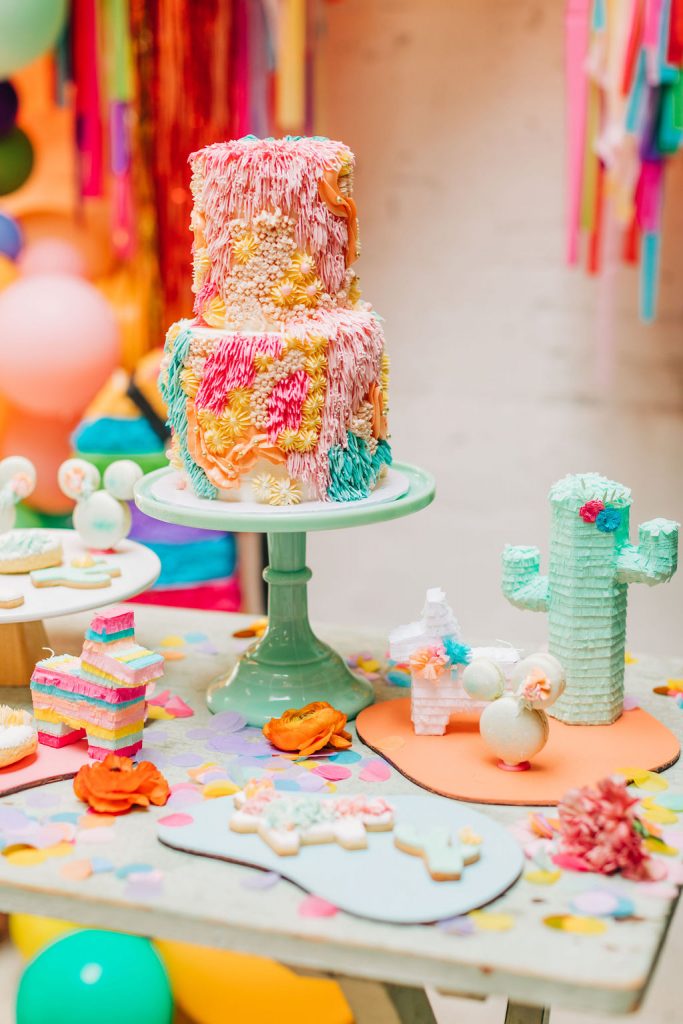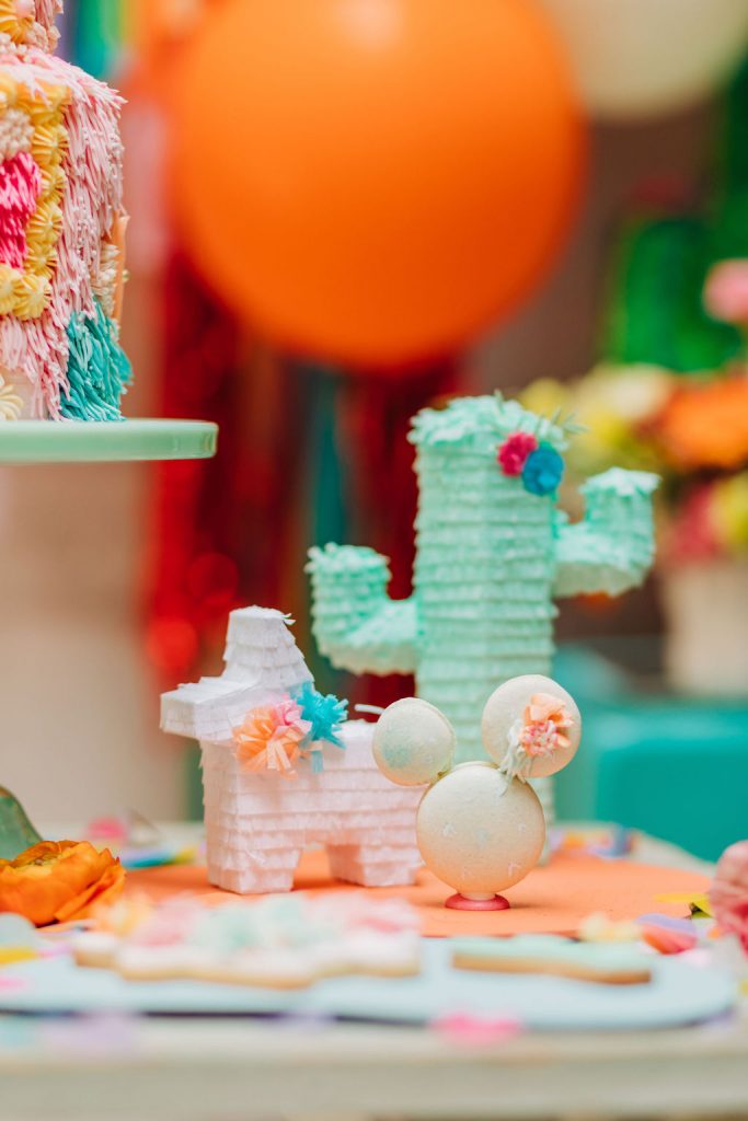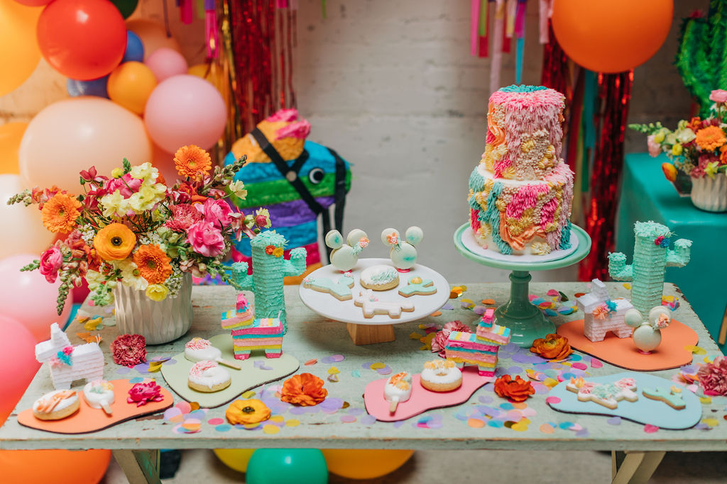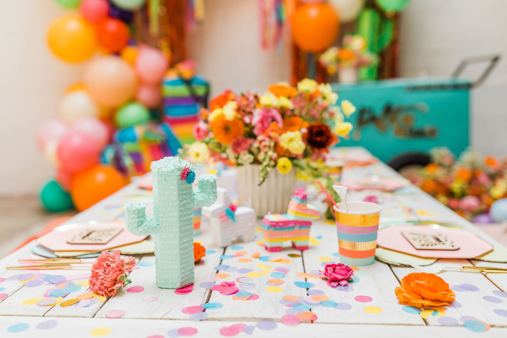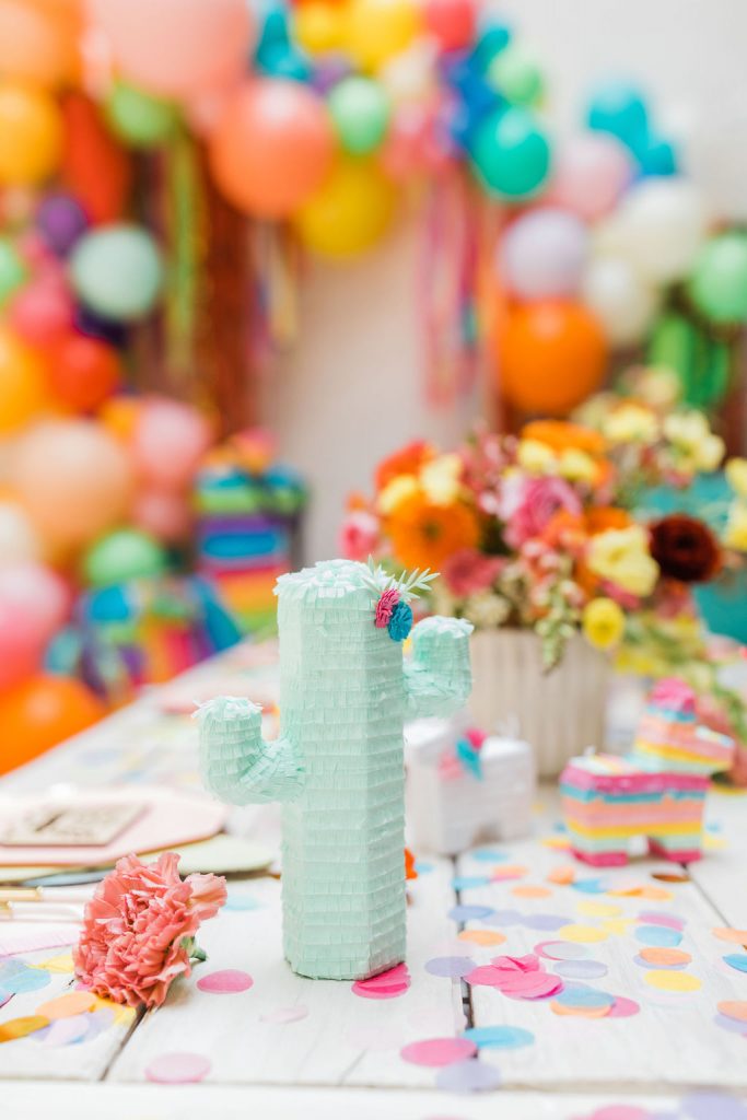 Our friend Christina at Lula Flora makes the most adorable mini piñatas so obviously, I had to have her involved!! I loved using her mini white llamas, mini rainbow llamas, and cactus!