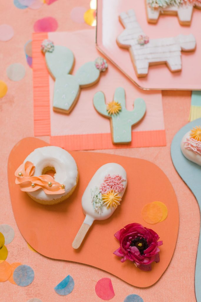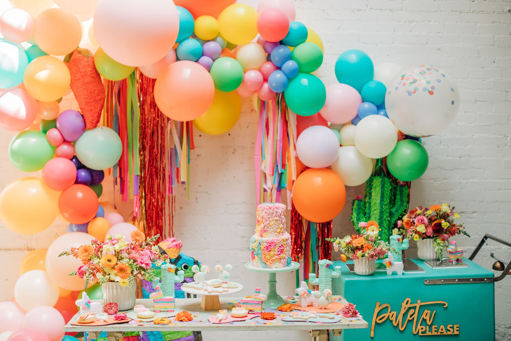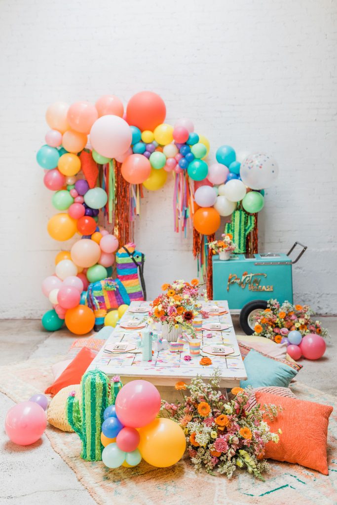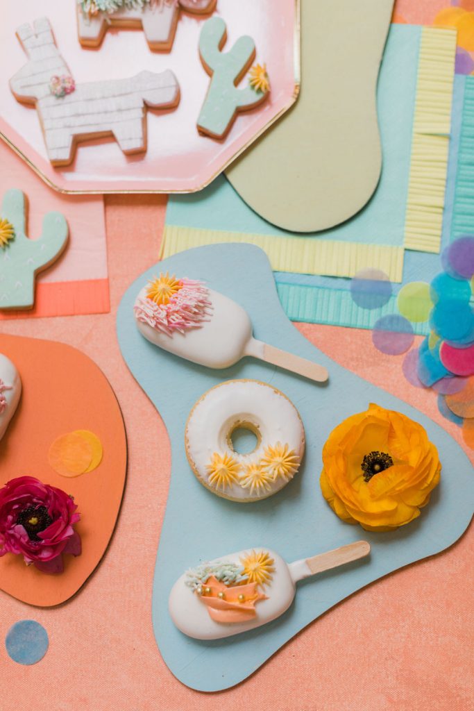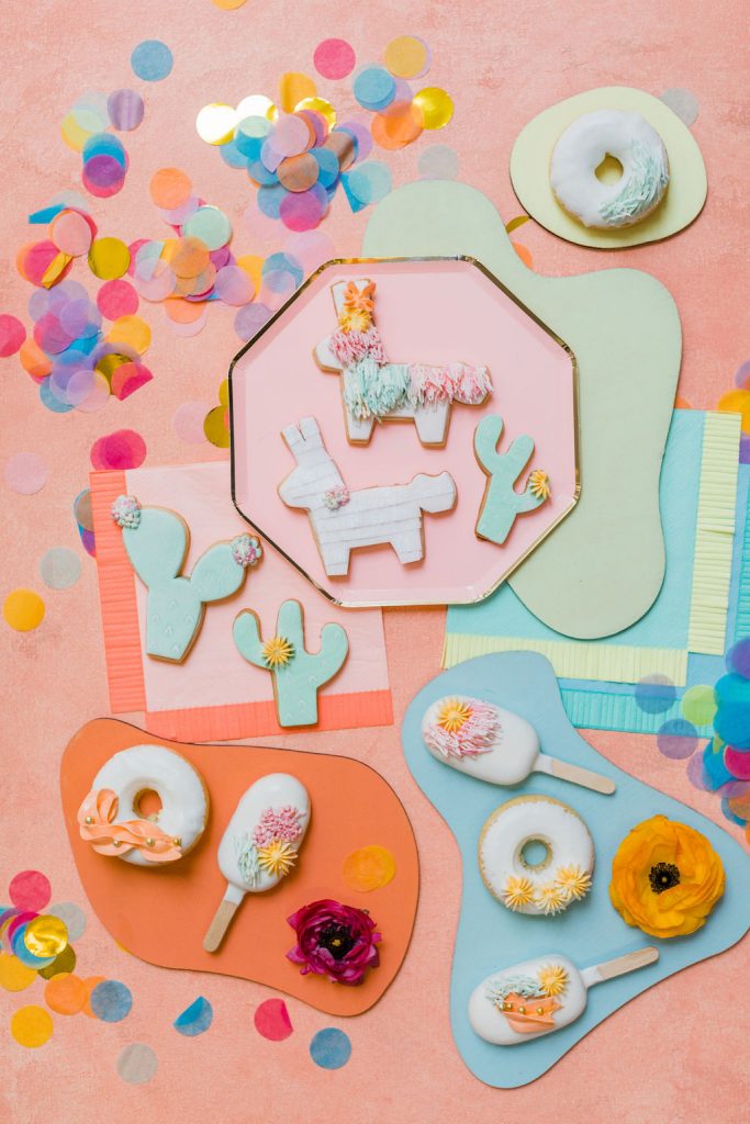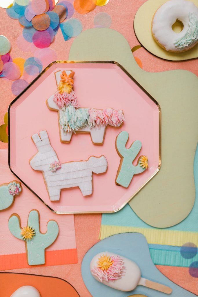Our friend Christina at Lula Flora makes the most adorable mini piñatas so obviously, I had to have her involved!! I loved using her mini white llamas, mini rainbow llamas, and cactus!