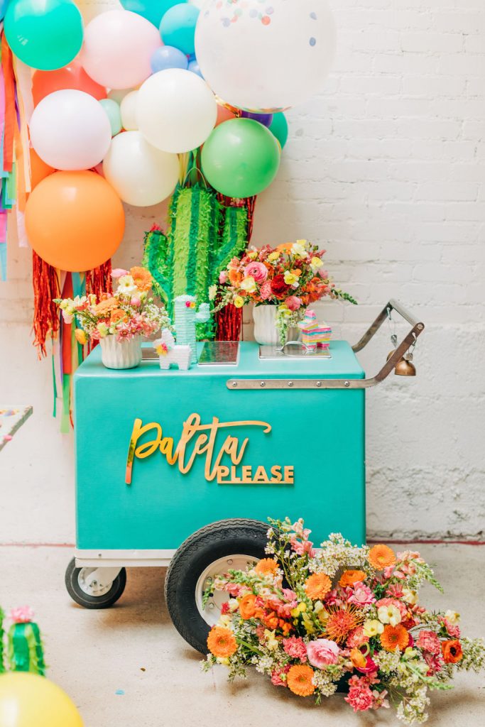We also had the cutest paleta cart from our friends at Paleta Please! We also used them in our Selena shoot, but they have this amazing turquoise color I couldn’t pass up. And guess what, the paletas were the kid’s favorite!!!