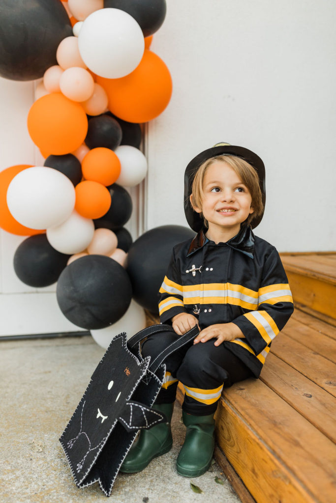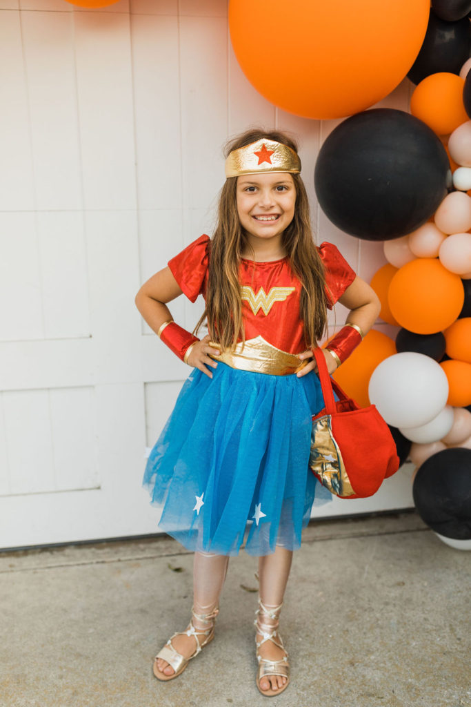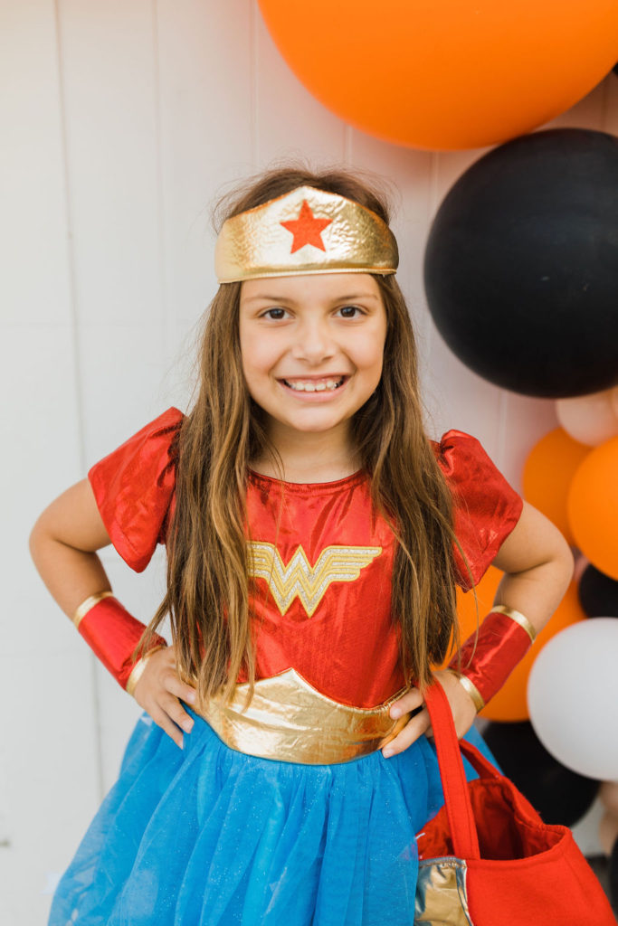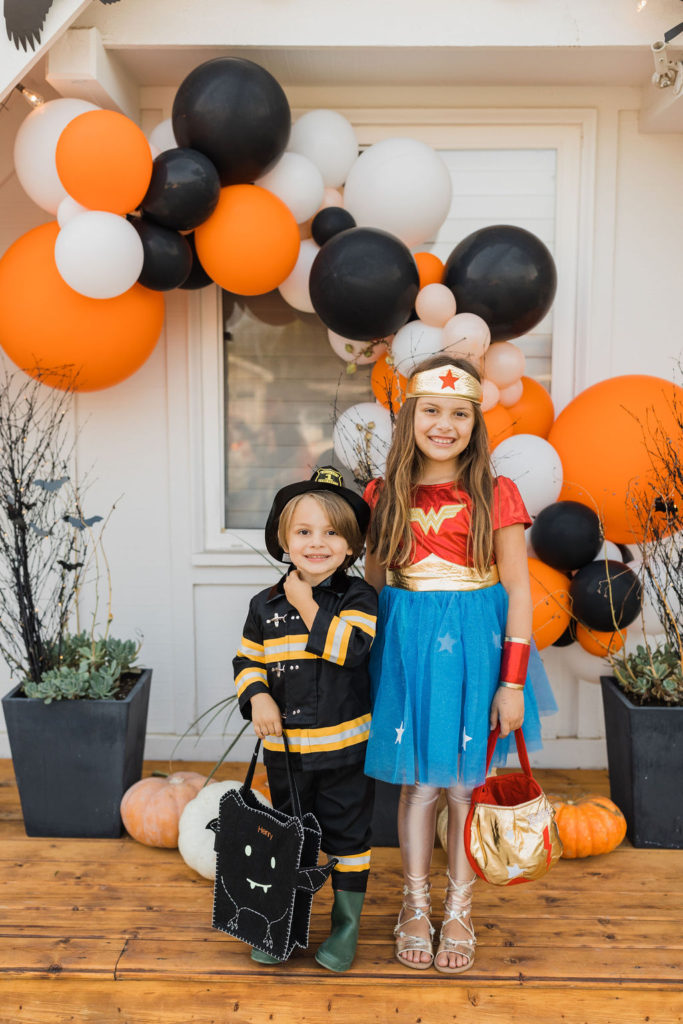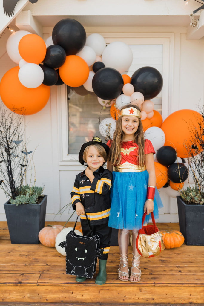 Now for our heroes!!! Edie and Henry were dressed as heroes to save the day. A firefighter and Wonder Woman! This is one dynamic brother and sister duo – and don’t you love all of the matching treat baskets?!