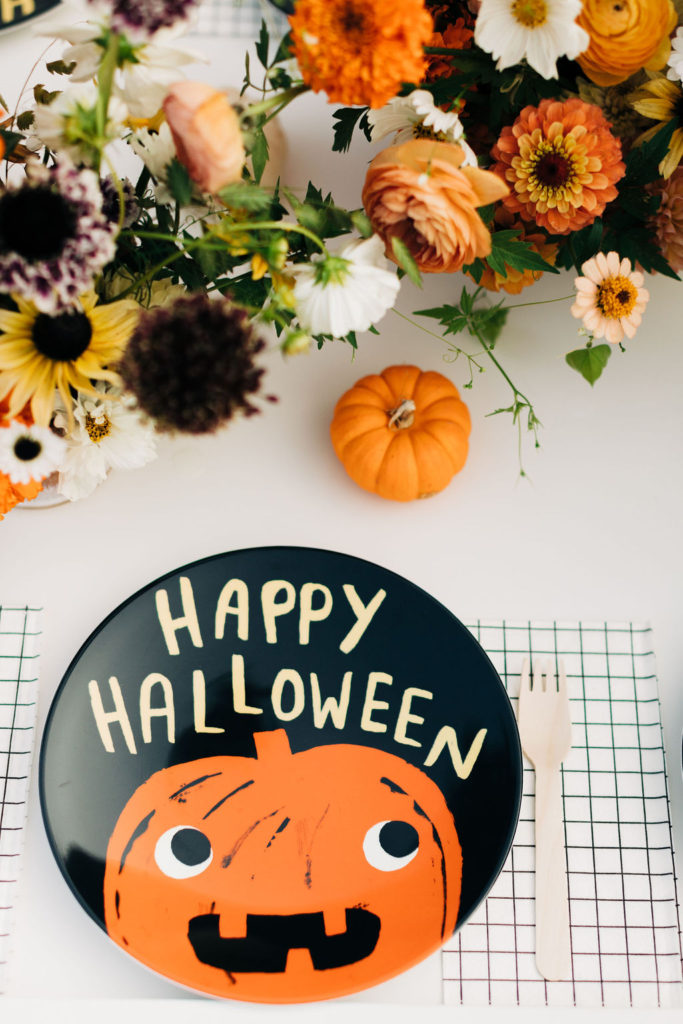 Now, lets set the table! Pottery Barn Kids has the cutest Halloween plates, complete with a happy jack-o-lantern! PS – they glow in the dark!!