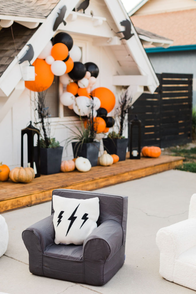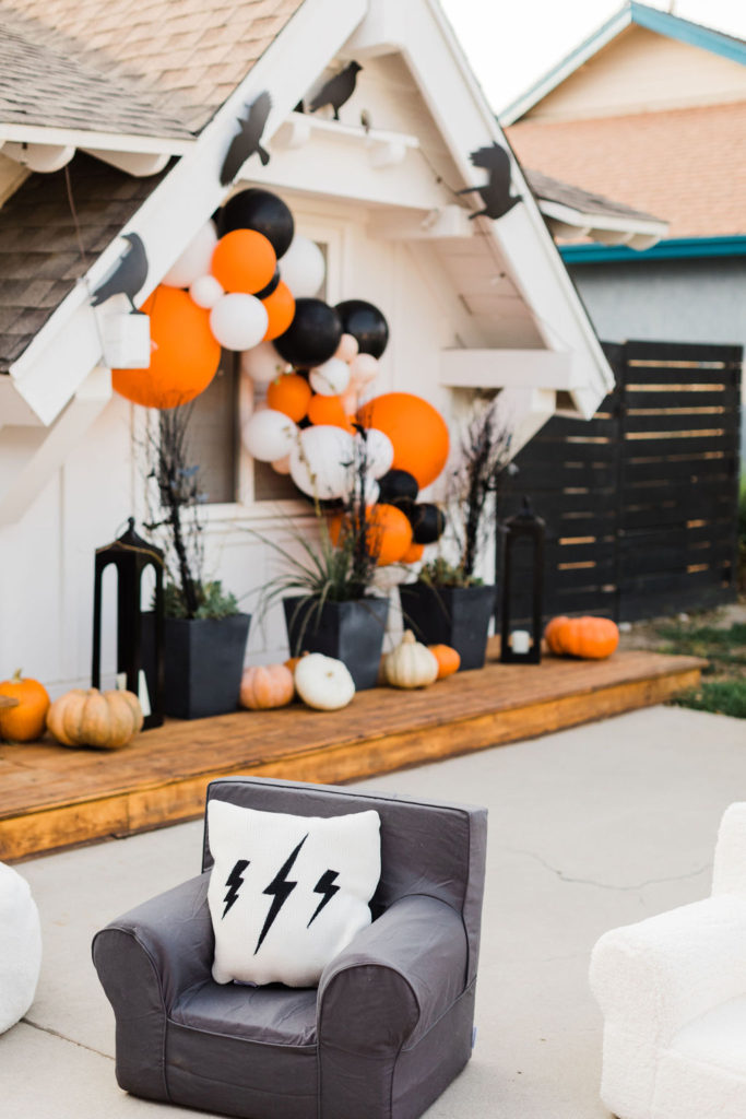 I love decorating for Halloween, you may have seen this post where I showcased how I decked out my front porch this year with Pottery Barn. Well, we added a few fun details for this party, like those amazing balloons by The Pop Shop. It’s always fun to get festive, but when it comes to Halloween it’s especially fun to get spooky!!