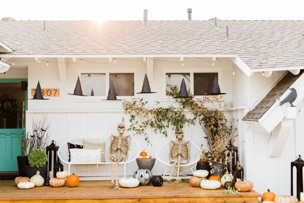 I linked all of my favorites from Pottery Barn at the end of this post, along with what I used to create the floating witch hats!