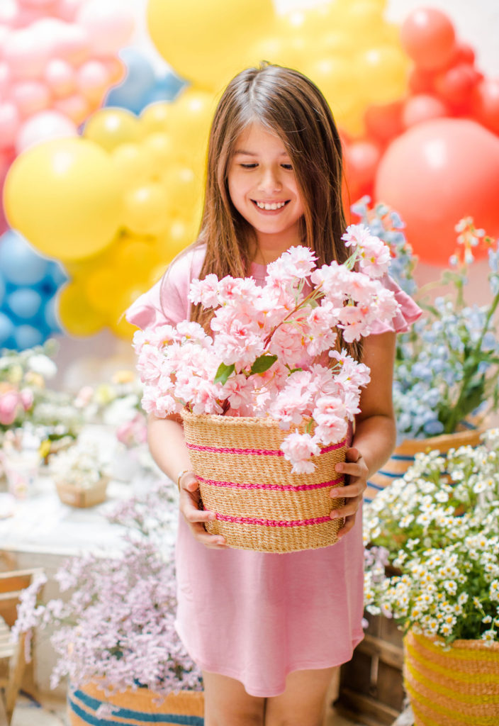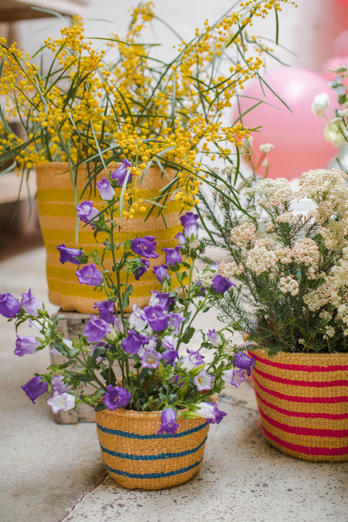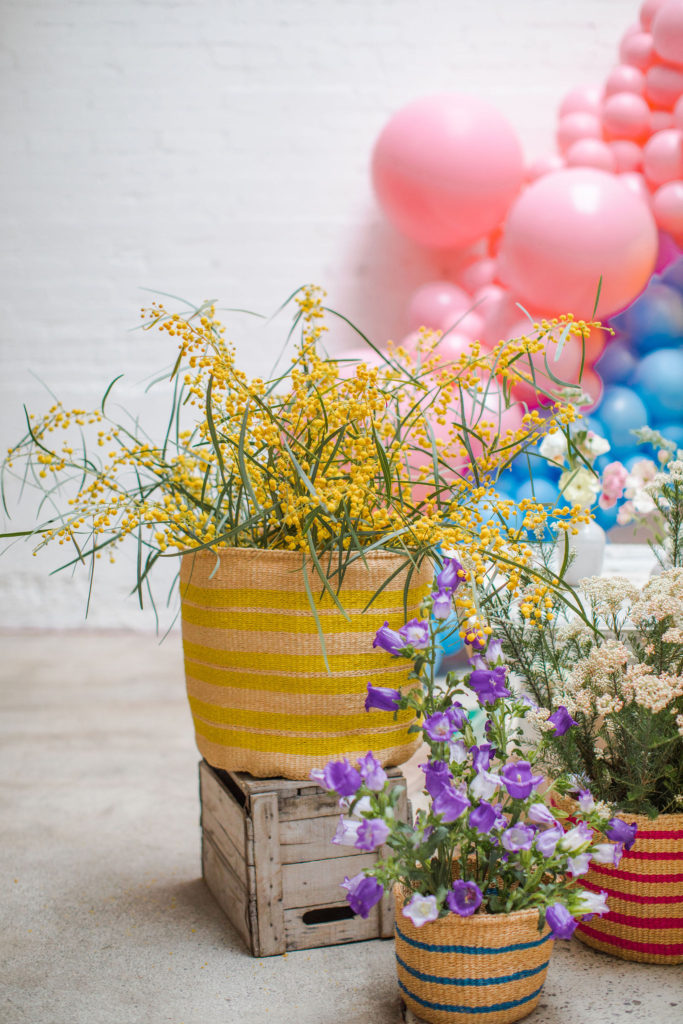 I enlisted the talented Alex of Third & Park who brought the most beautiful blooms!!! We had gorgeous arrangements along the table, but also added florals to these Little Market Baskets! I love the way they came together and the bright colors of the baskets are just so fun!