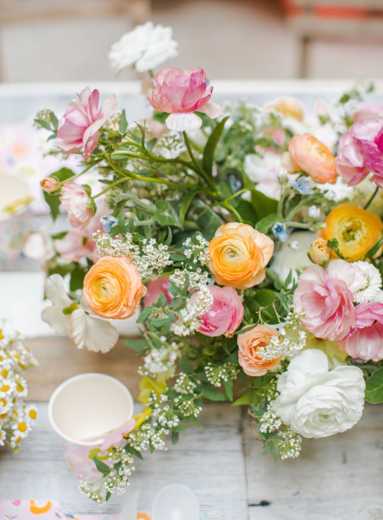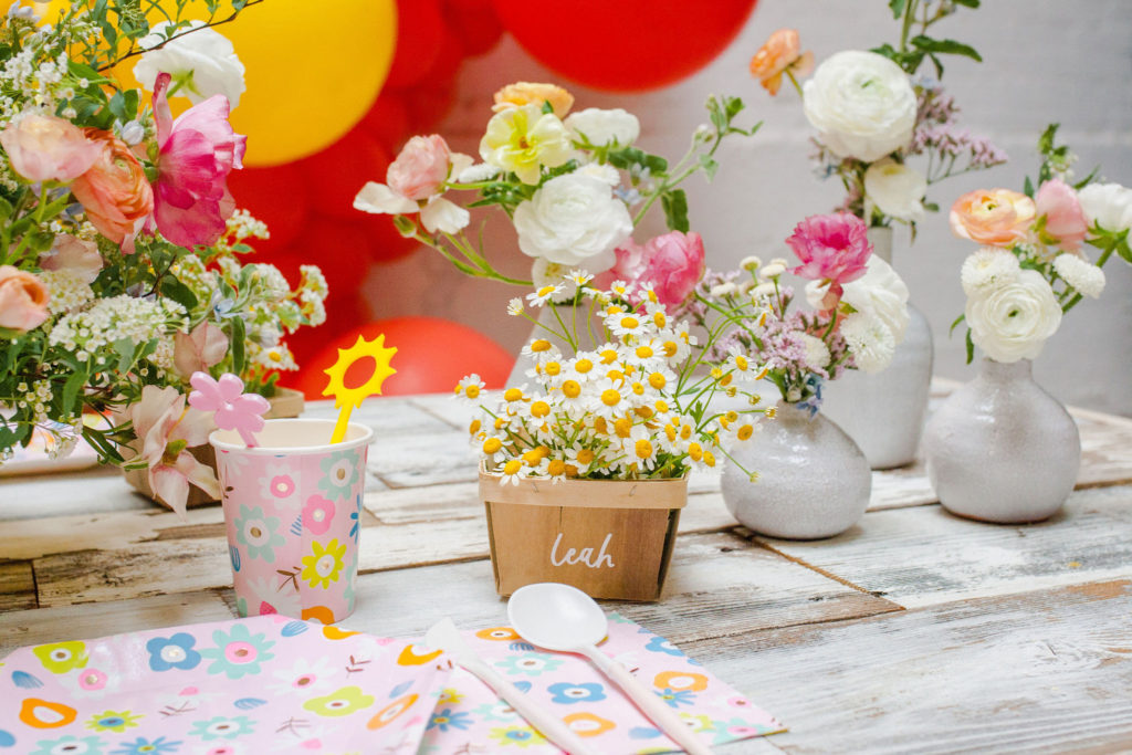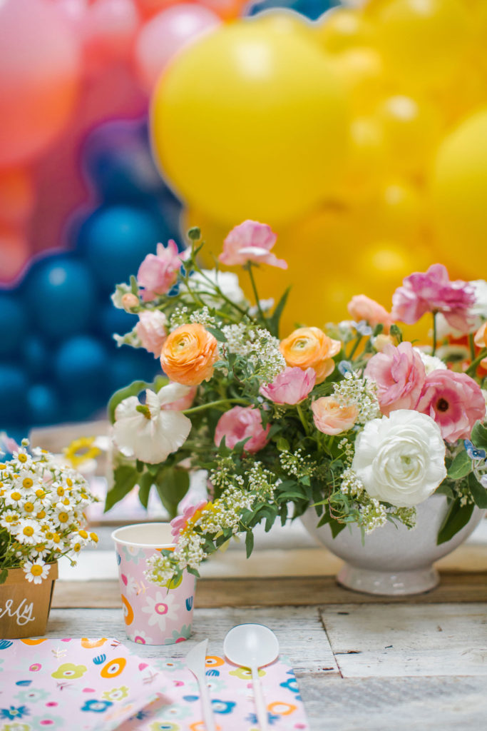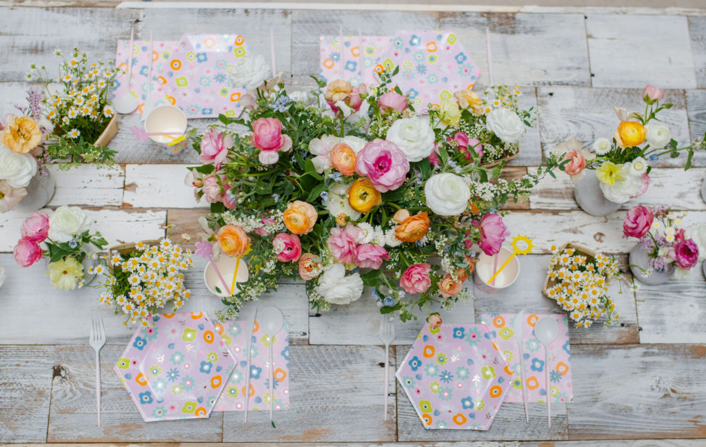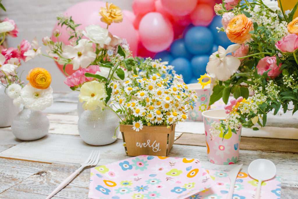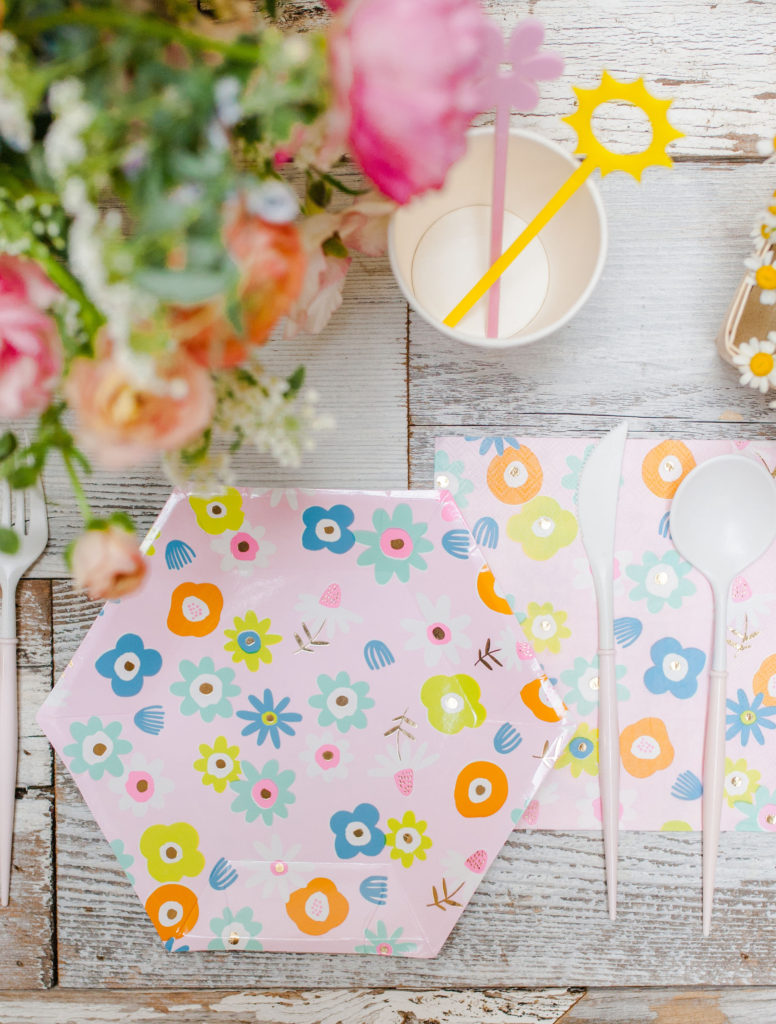 April showers bring May flowers! This pretty little party was inspired by Daydream Society’s newest plate collection – Flora! It’s the prettiest print that’s perfect for Spring with all of our favorite colors of pinks, blues and yellows. I wanted to create something full of florals for spring, something that brought happiness to the eyes!