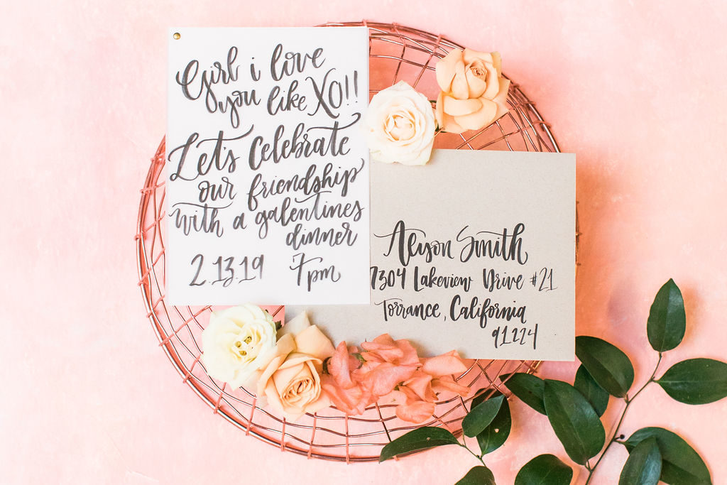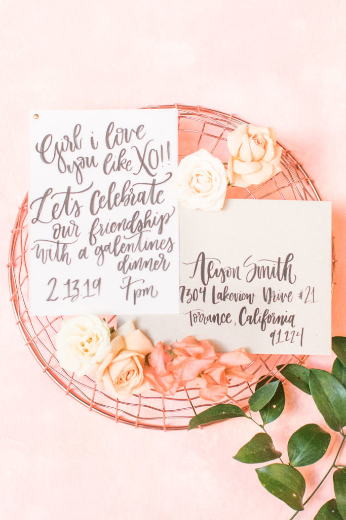 Let’s talk necessities… Don’t forget the details! Place cards & an invite are key!! Stand Tall Mia took care of that for us with her pretty penmanship. It’s always nice to get an invite in the mail, makes you feel pretty darn special right?!  And my mailbox is lonely after all those Christmas cards, it needs some new friends other than bills, ha!