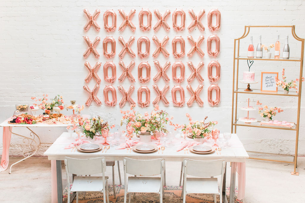 Galentine’s Day is such a great reason to get all your favorite ladies together, I mean not like we need one, but still fun! Getting all the gals together to say you love them like XO is a great excuse to go all out! And it’s even more fun to use all the shades of pink, including our favorite – Rose Gold!!! We threw a pretty fun Galentine’s Day celebration last year, you can see it here!