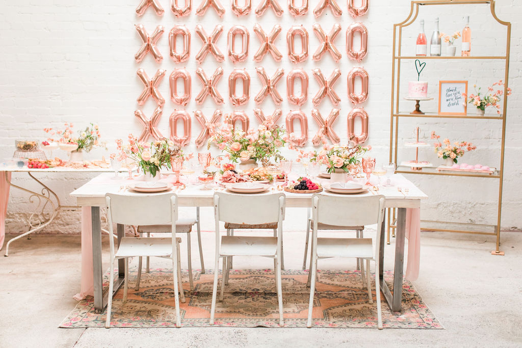 Galentine’s Day is such a great reason to get all your favorite ladies together, I mean not like we need one, but still fun! Getting all the gals together to say you love them like XO is a great excuse to go all out! And it’s even more fun to use all the shades of pink, including our favorite – Rose Gold!!! We threw a pretty fun Galentine’s Day celebration last year, you can see it here!