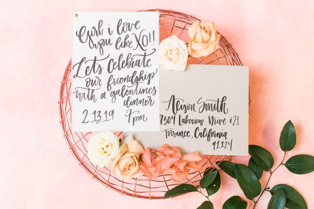 Let’s talk necessities… Don’t forget the details! Place cards & an invite are key!! Stand Tall Mia took care of that for us with her pretty penmanship. It’s always nice to get an invite in the mail, makes you feel pretty darn special right?!  And my mailbox is lonely after all those Christmas cards, it needs some new friends other than bills, ha!