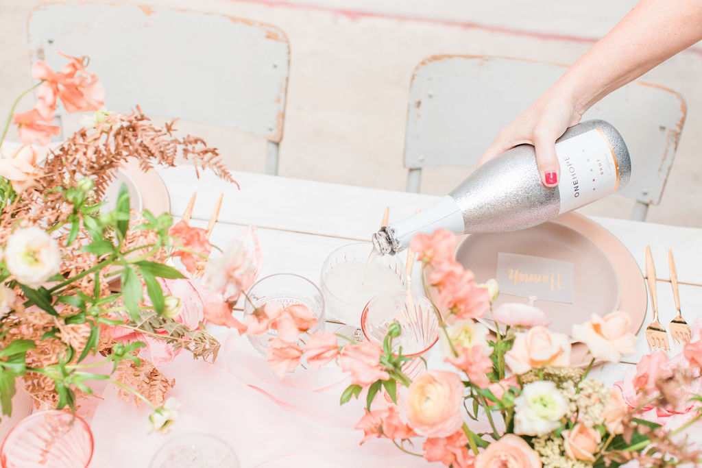 Pop the bubbly and pour some glasses!  I think it’s always nice to greet your guests with a drink, and no girl in my tribe is gonna turn down a glass!  Especially of One Hope’s sparkling wine!!