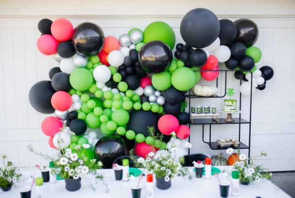 I was inspired by the adorable blue and white cloud print that is associated with Toy Story – you know the one! Well my talented friend Ellen from The Pop Shop created it for me with these amazing balloons from Qualatex! I love the way it turned out and it makes such a statement!!