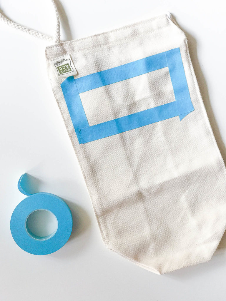 Tape off a rectangle in the desired location you want to put the name. You can also get creative and do different shapes like a circle or a triangle. Make sure the tape is tight and press firmly to assure its on there good! You don’t want the paint to bleed thru.
