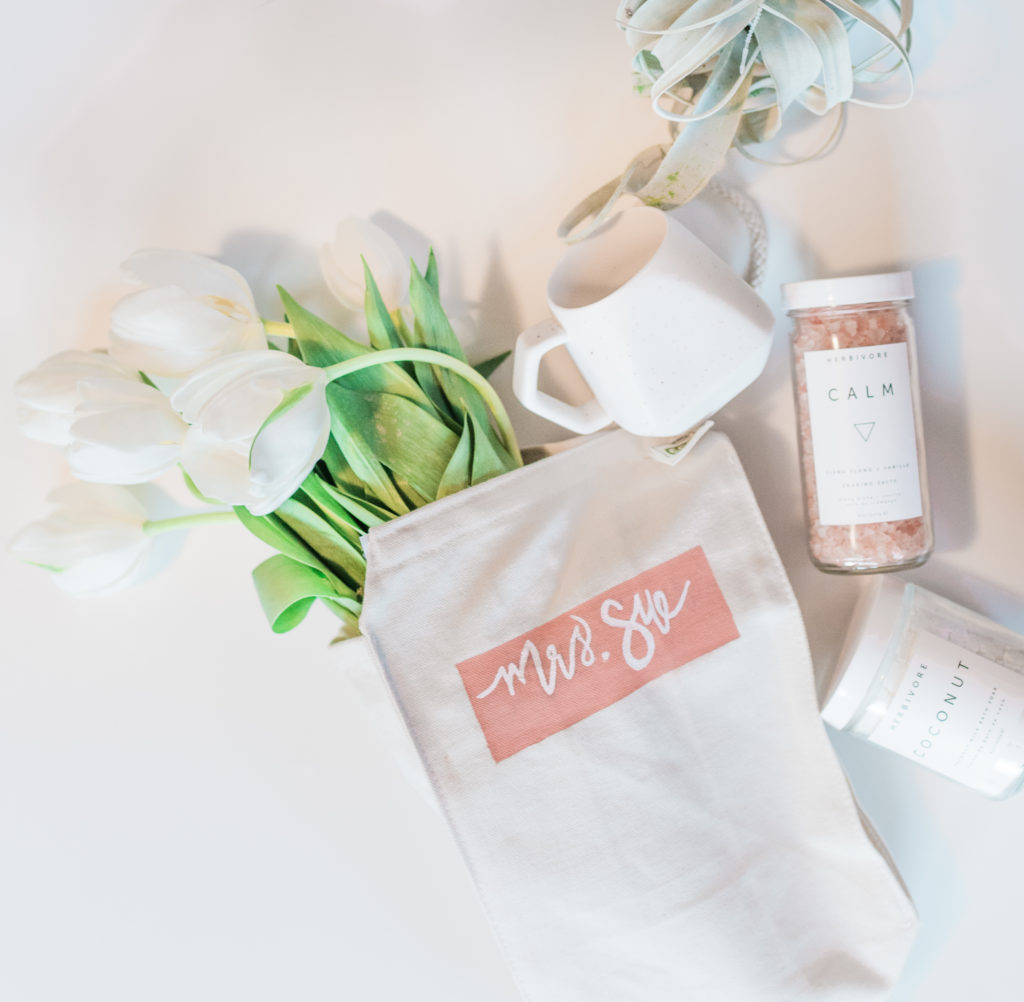 This is a simple DIY that anyone can do! I filled the reusable tote bag with items I think any teacher or anyone for that matter would love. These are my favorite relaxing essentials, and we all know a teacher needs a little R&R after a long day with young kids!