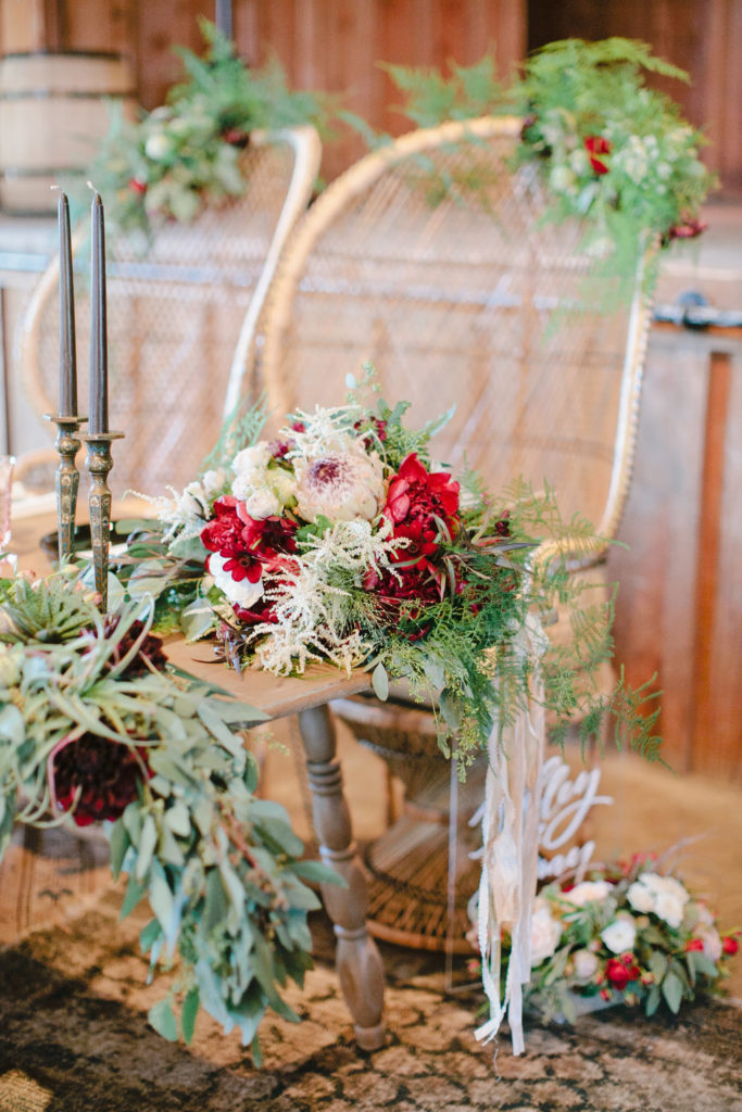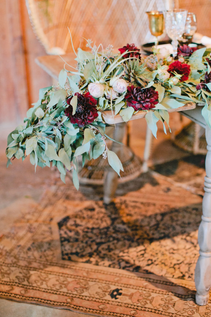 There definitely is no shortage of boho inspiration here over at Beijos. It’s kinda our jam. But when we get to throw that boho vibe into a mix of rustic and a bit of edge, it is something that is new + fresh for us to play with. This past summer I did a wedding in Nothern California at Roaring Camp. It is a rustic ranch style property where families can come and picnic as well as having events like this wedding. The bride, Ashley, wanted vintage textiles, rustic florals, moody jewel tones, and eclectic details. These gypsy style elements all came together to create a free-spirited look and it was a perfect backdrop to celebrate these two families coming together as one.