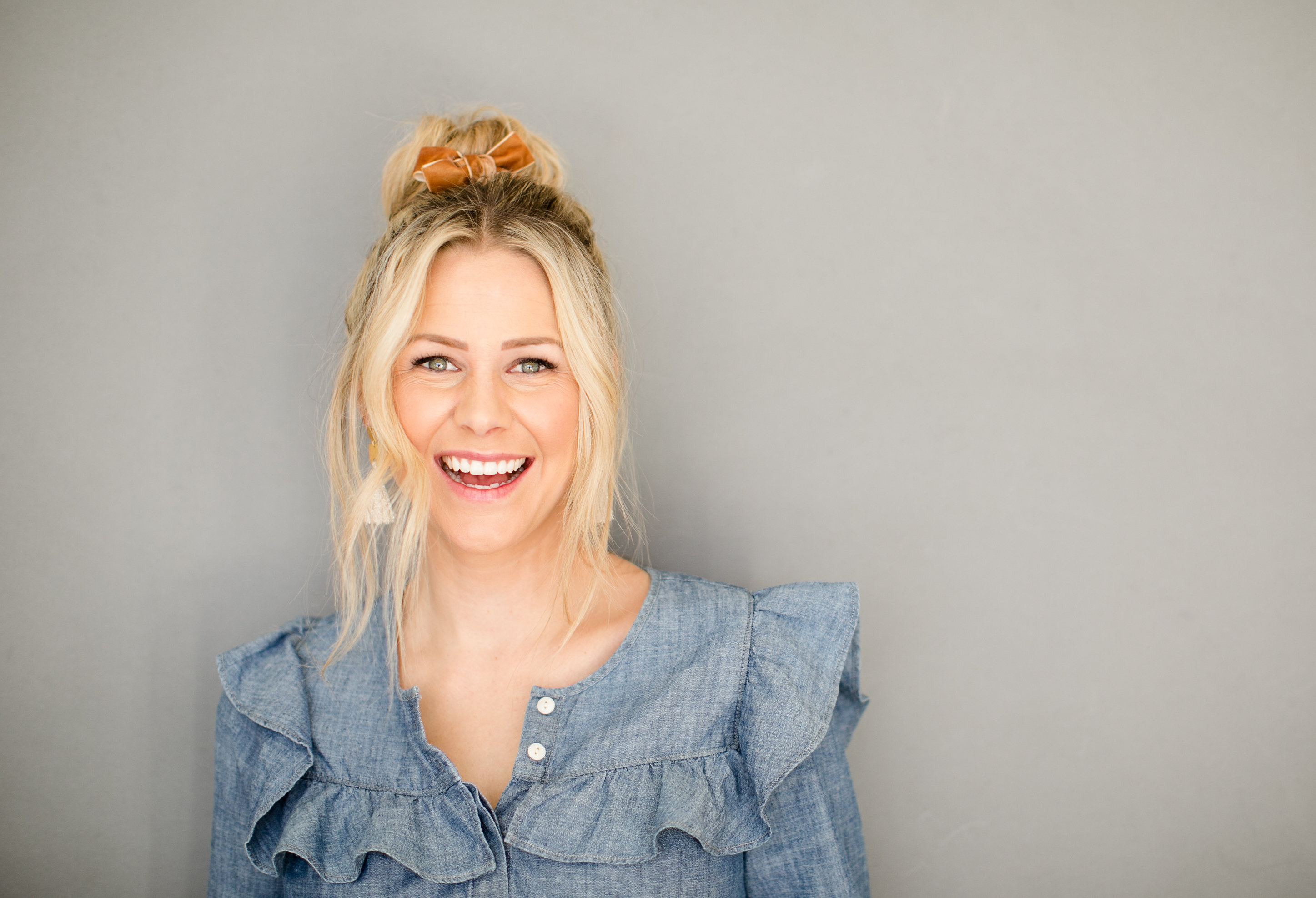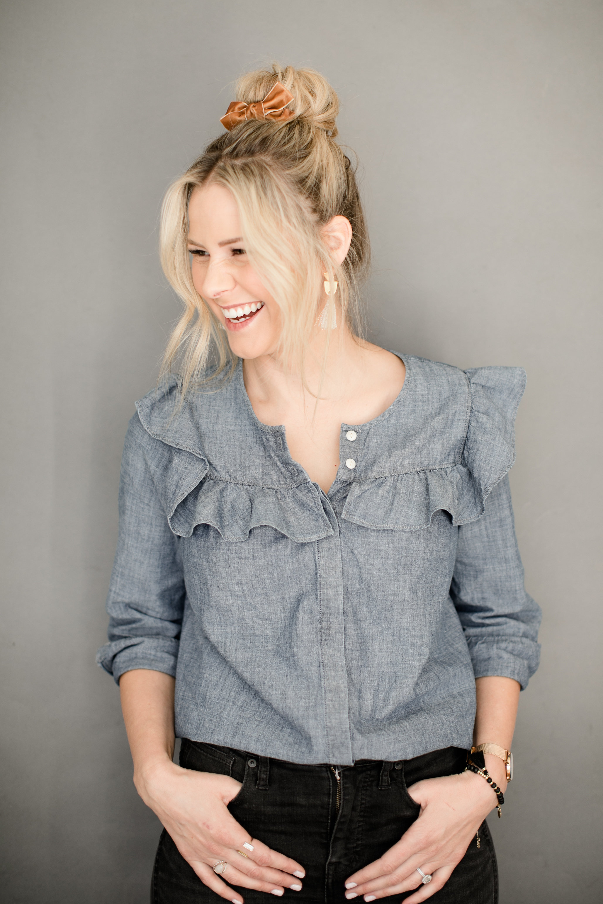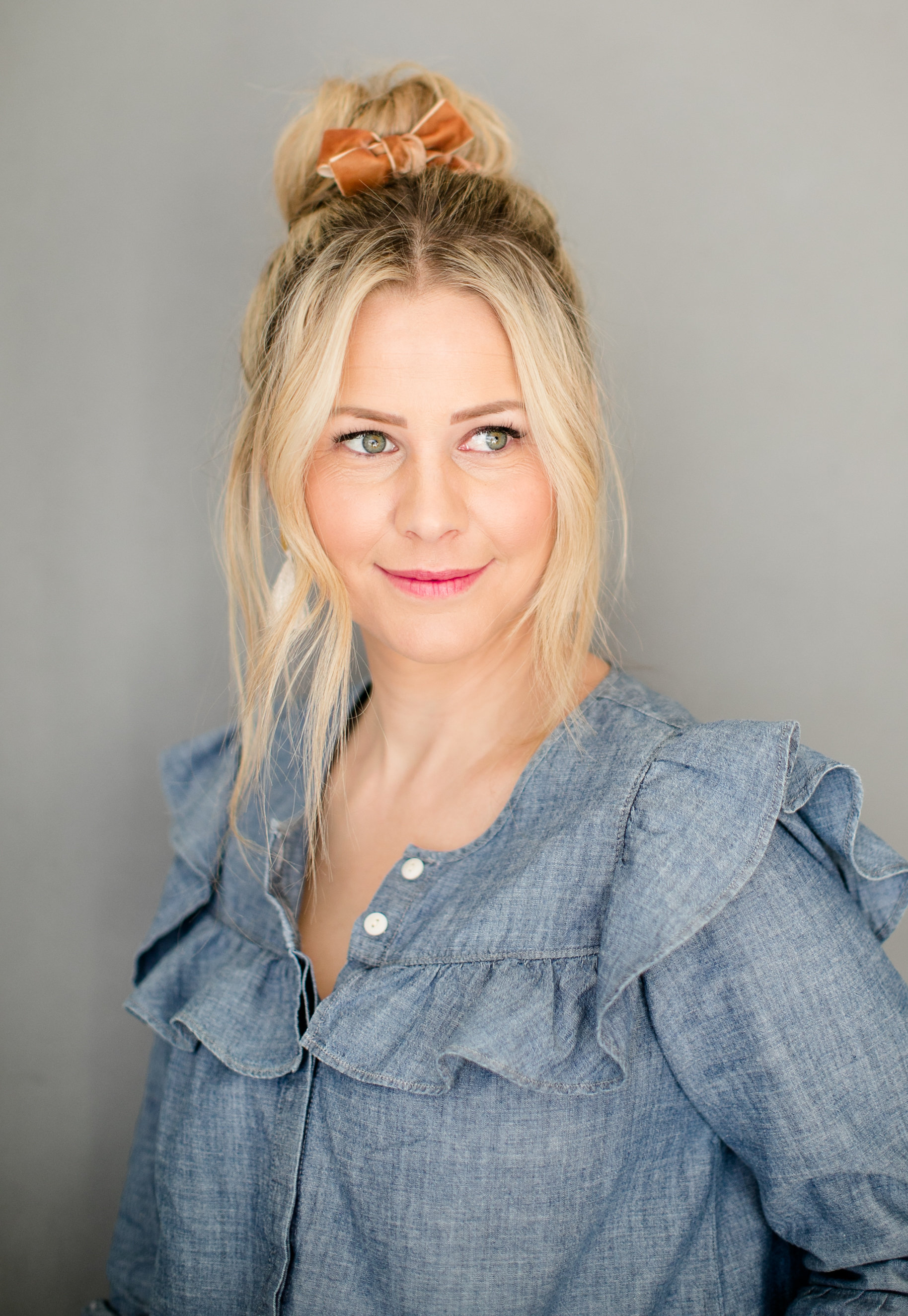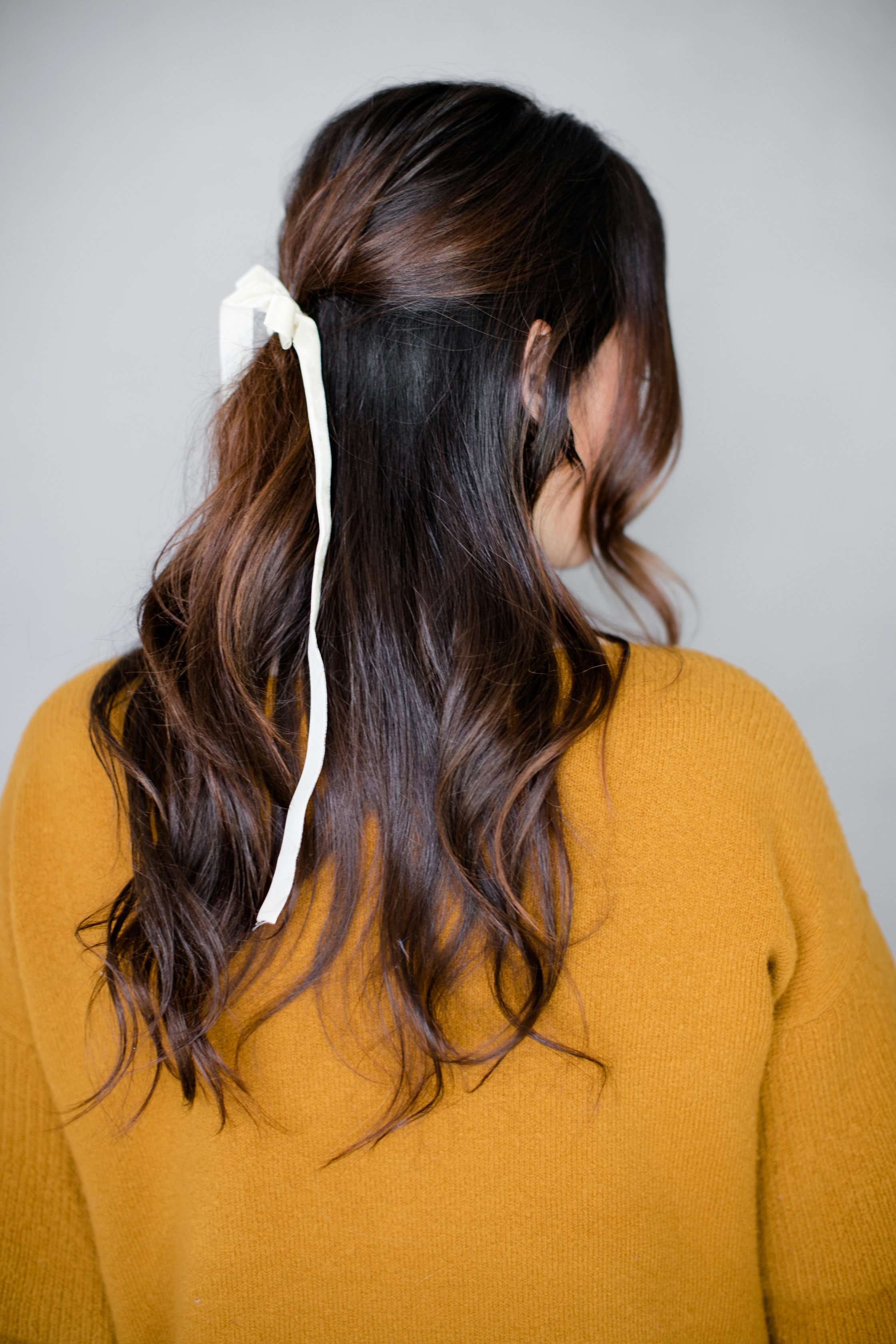 “Don’t be afraid to have a messy bun, since you’re placing a pretty bow along side it. I think a little imperfection makes it perfection”