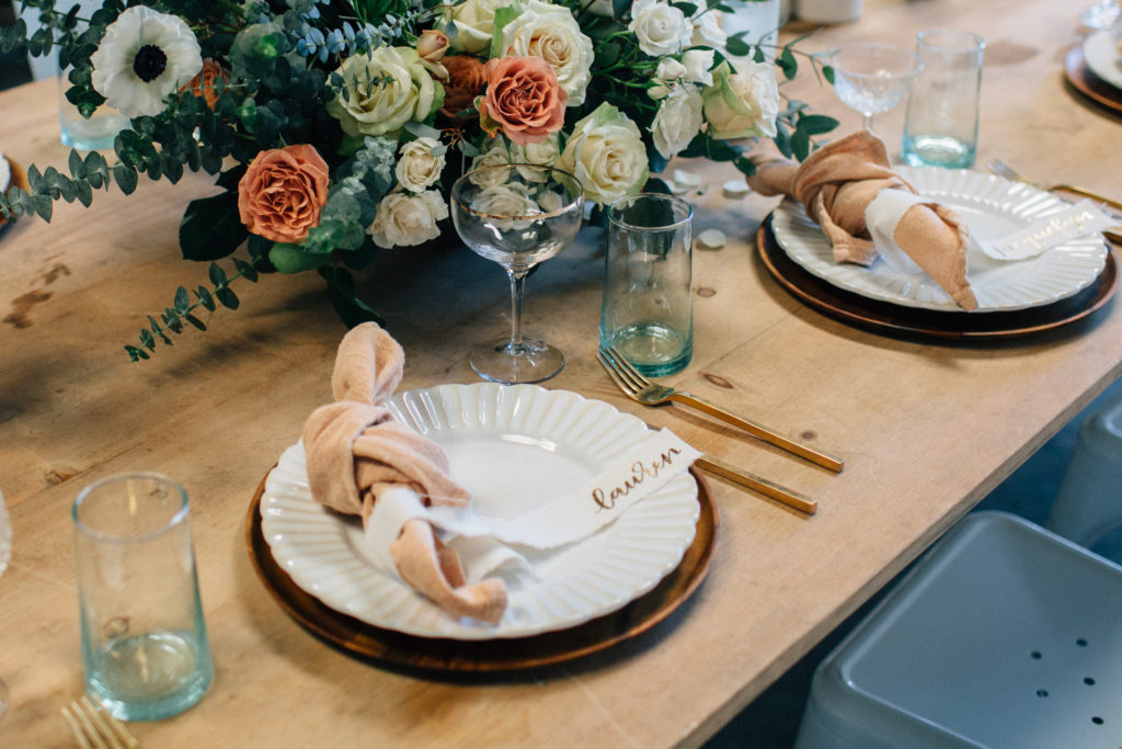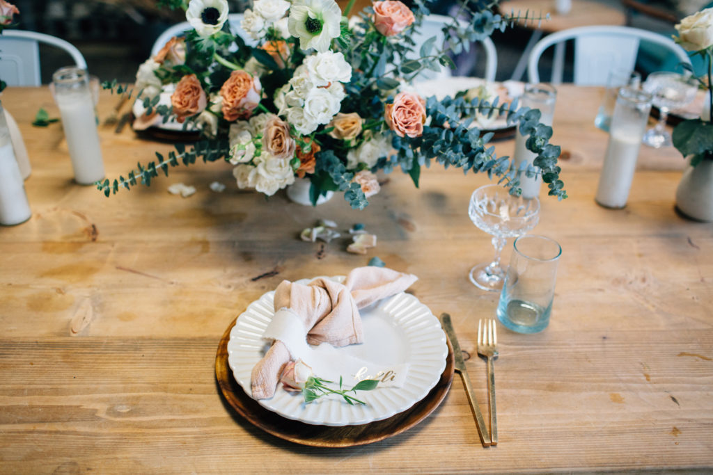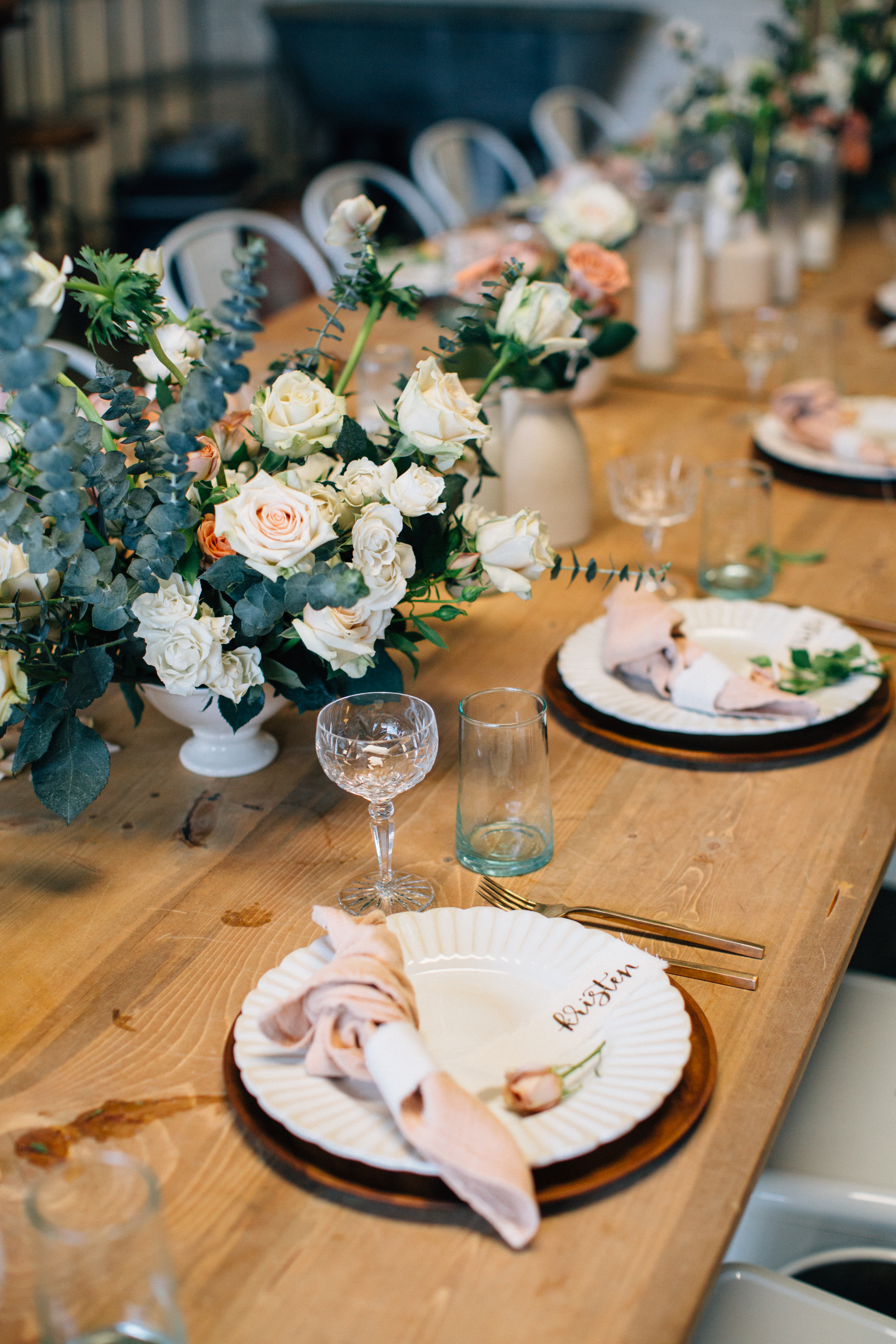 It was a small sprinkle with about 15 of us, nice and intimate just the way I like it!  The colors were neutrals and mint, inspired by Julia’s favorite blanket colors from her Gunn & Swain collection.  I used beautiful pieces from Hostess Haven for the tabletop; a mix of woods, whites and mint glassware.  My friend Courtney of Poppy Jack Shop made the prettiest metallic place cards that complimented the setting perfectly.