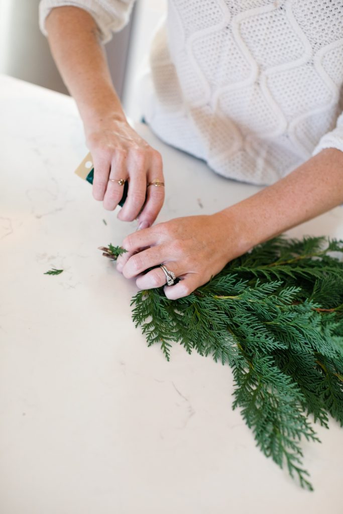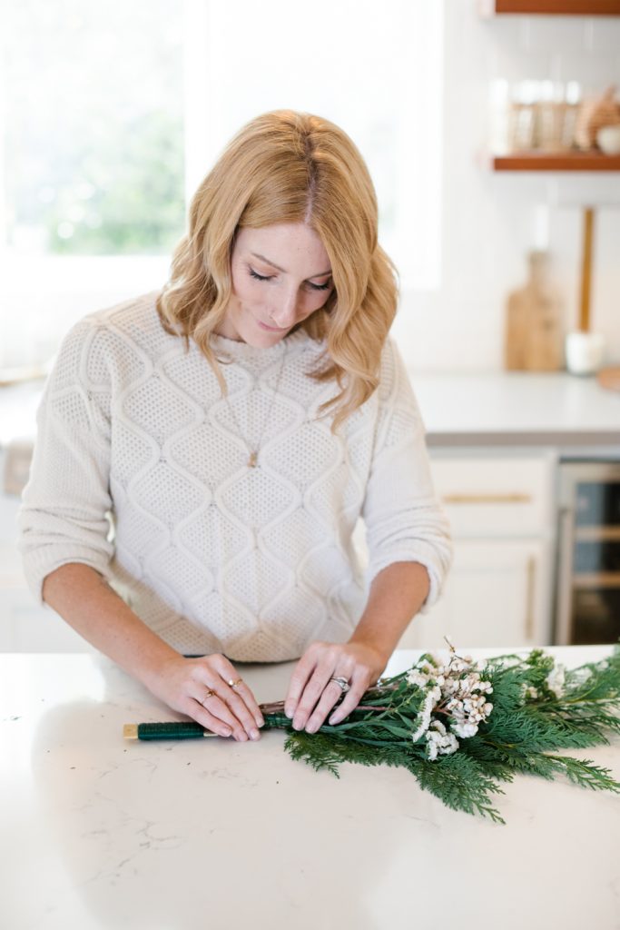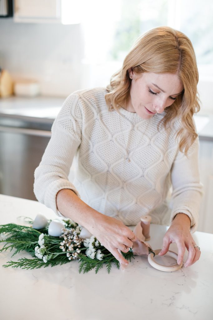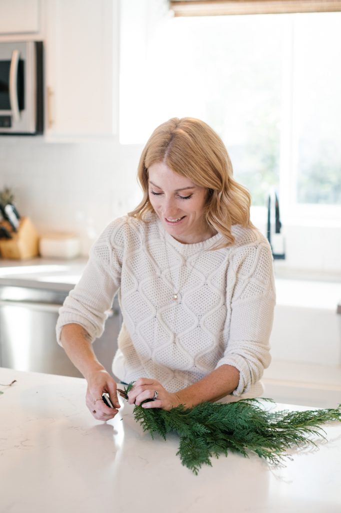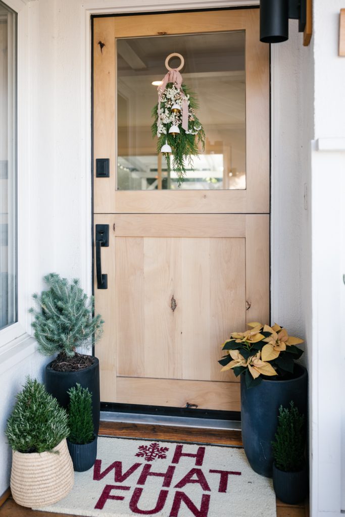Since the spring we’ve been collaborating with our dear friend Krista of Not Just in Novels on adding some love to my front door for each season or holiday. We’ve done DIY after DIY and each one has been beautiful! Christmas is a favorite time for wreaths, and a favorite time to add cheer to your front door. This year I wanted to do something different than a wreath and got inspired by a few pretty greenery hanging pieces. We added some gorgeous ribbon and modern bells and voila, my beautiful statement wreath was born! Krista makes it all so easy with her step-by-step guide which you can see below! I also included a few shopping items that make the front porch area really shine.
