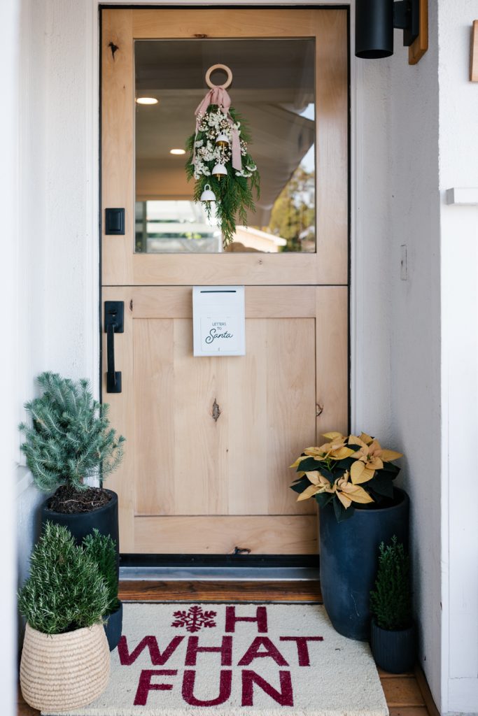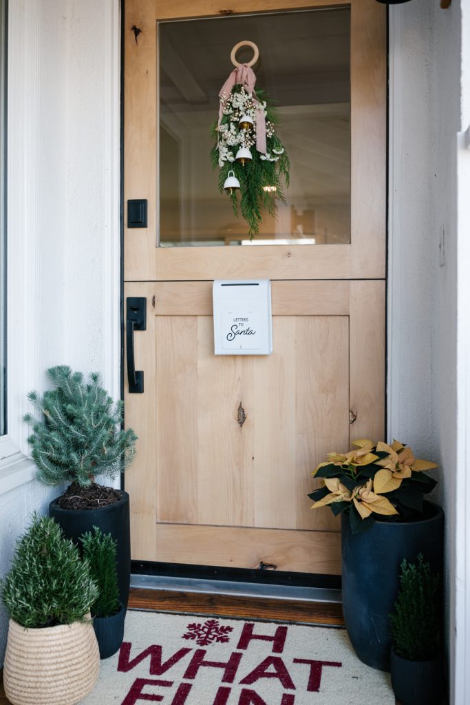 And there you have it! Just four easy steps to this cuteness!! For the rest of my porch I got the cutest Oh What Fun door mat from Crate & Barrel and amazing planters from Hart Concrete Design and Target. I planted some poinsettias, cedar, rosemary, and a mini fir tree to add some more color and make it extra festive! Lastly, the letters to Santa Mailbox was a $5 find at Target, but they also have this one that is much cuter!