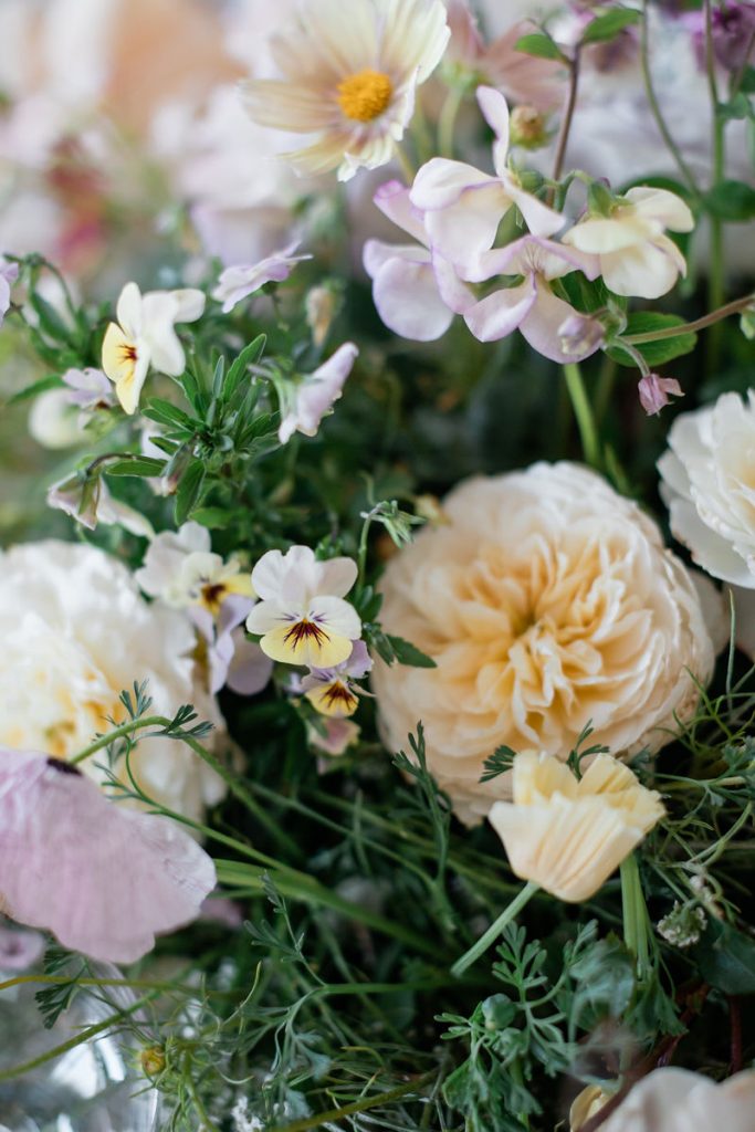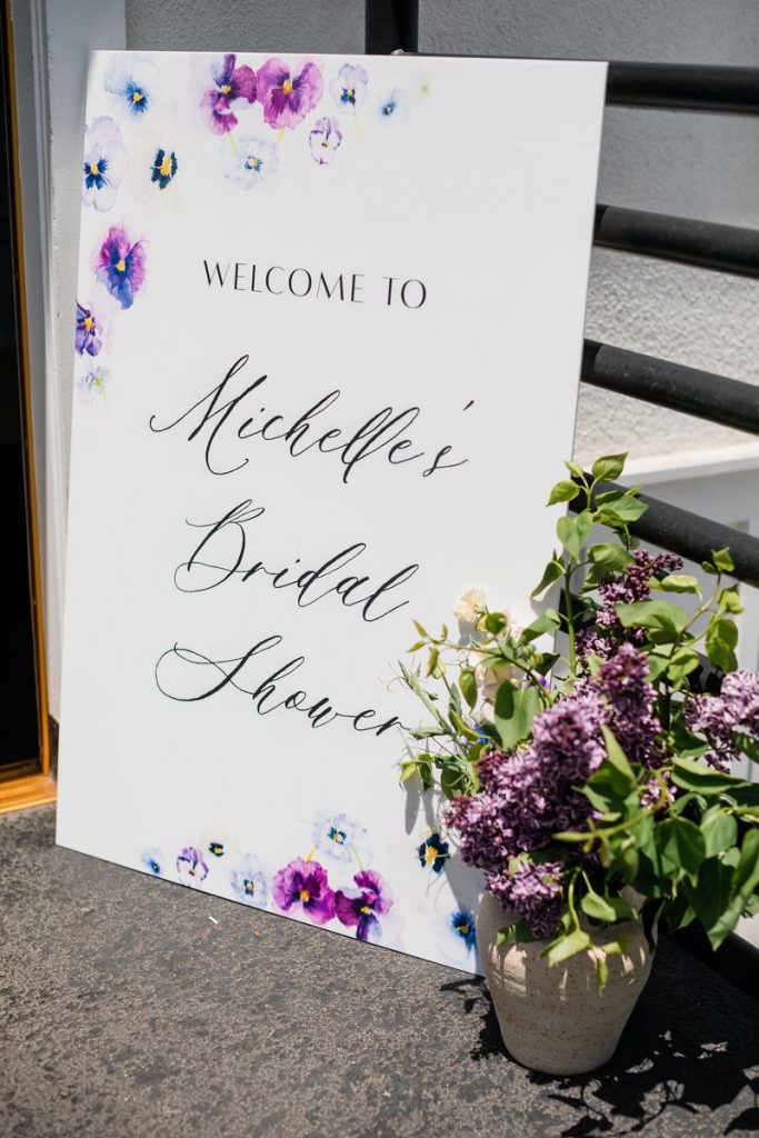 Michelle was an easy client because she had a clear vision, and that vision included pansies!! We used her love for that delicate flower all over, including this beautiful welcome sign by Pirouette Paper & Creative Amme.