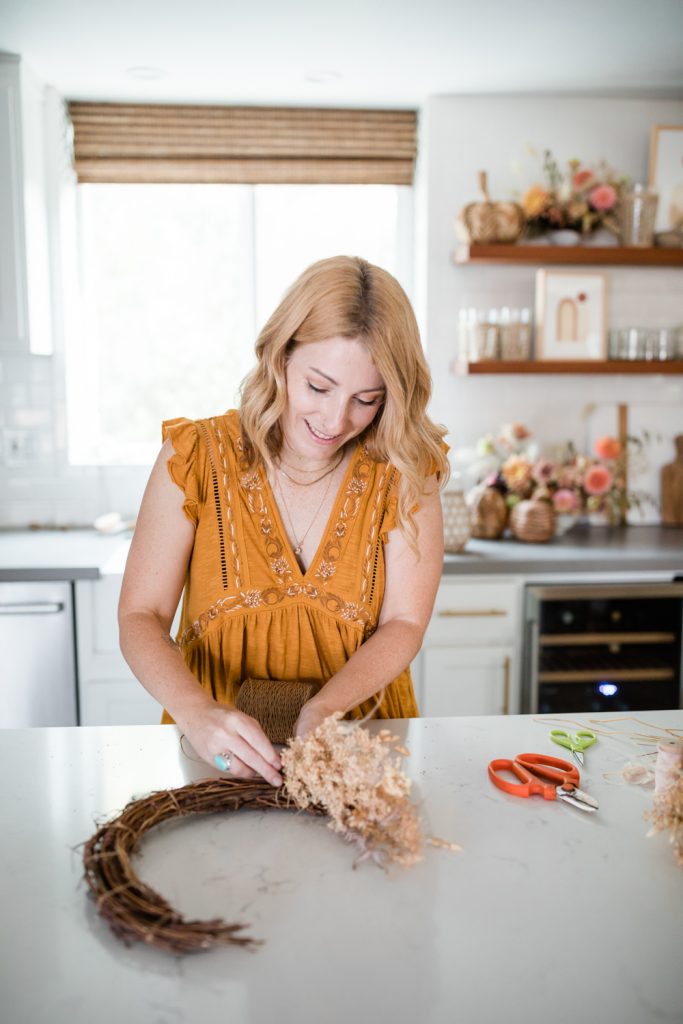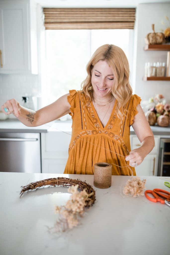 Another season calls for another front door wreath DIY with our friend Krista of Not Just in Novels! I just realized as I was writing this that we have done one for Spring, Summer, and now Fall! I guess we should probably do one for winter too, haha!! For the Fall wreath, we went with a celestial theme to also celebrate Halloween. But since this wreath’s colors are so neutral it can easily cover the whole season! Follow Krista’s simple steps to create this beauty on your own, we also included other decor pieces to make it even cuter! Scroll away, friends!