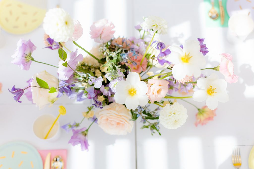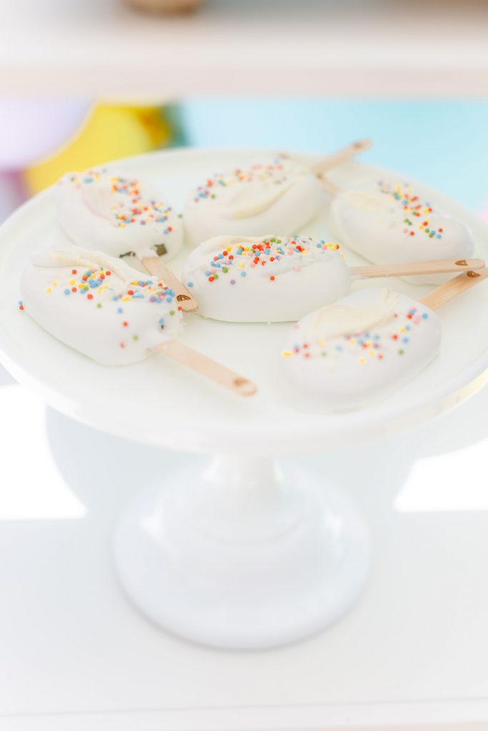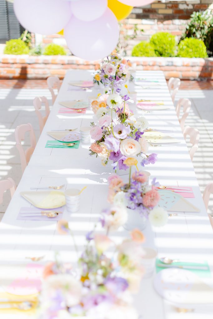 We used these adorable gelato plates from Oh Happy Day and paired them with coordinating napkins. The cups are my favorite stripe from Daydream Society and the flatware is Sugar and Cloth. It came together so well, don’t you think?