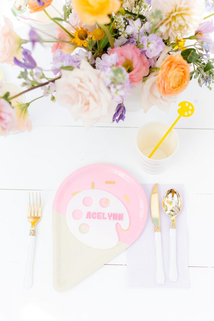 Back in September, we got to be a part of sweet Acelynn’s 8th birthday party! She is the niece of our friend Marnie, owner of Sweet Salvage Rentals, so of course, we wanted to make it extra special! Acelynn loves art and ice cream so we had our theme set! A painting party to get creative and then ice cream to treat yourself after. Sounds pretty perfect, don’t you think?! Let’s take a look at this adorable party!