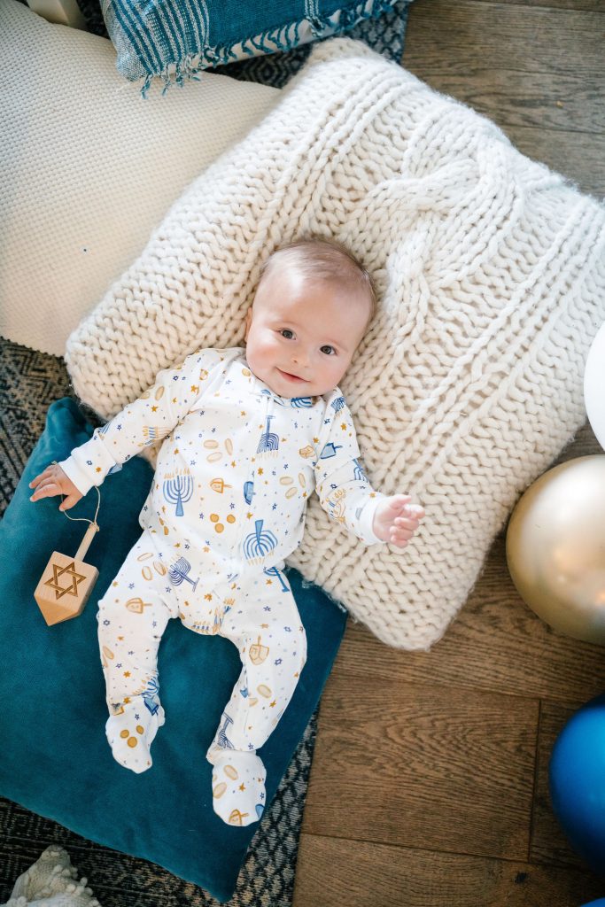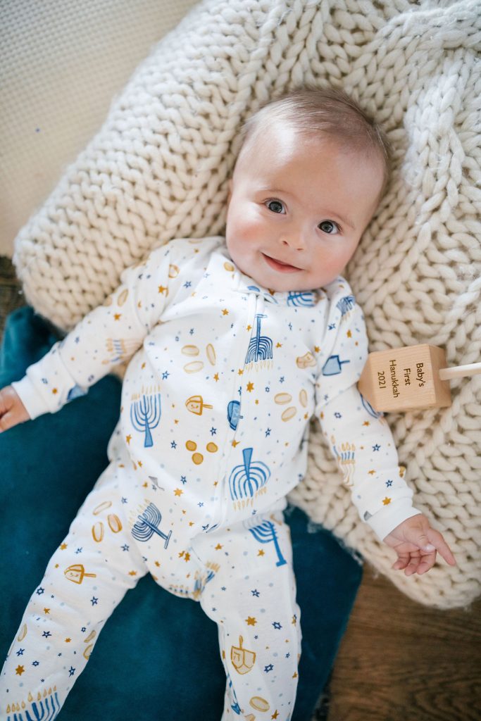 Time to add in the cute little ones and it doesn’t get much cuter than this!!! Baby Jake is ready for his first Hanukkah and he’s pretty smiley about it! We have him set with his very first dreidel from Pottery Barn Kids that is monogrammed just for him! And doesn’t he look adorable in his PBK Hanukkah onesie?! I’m obsessed with this little guy!!!