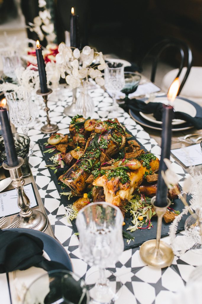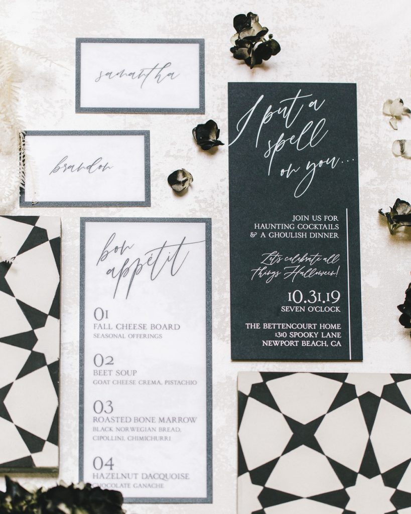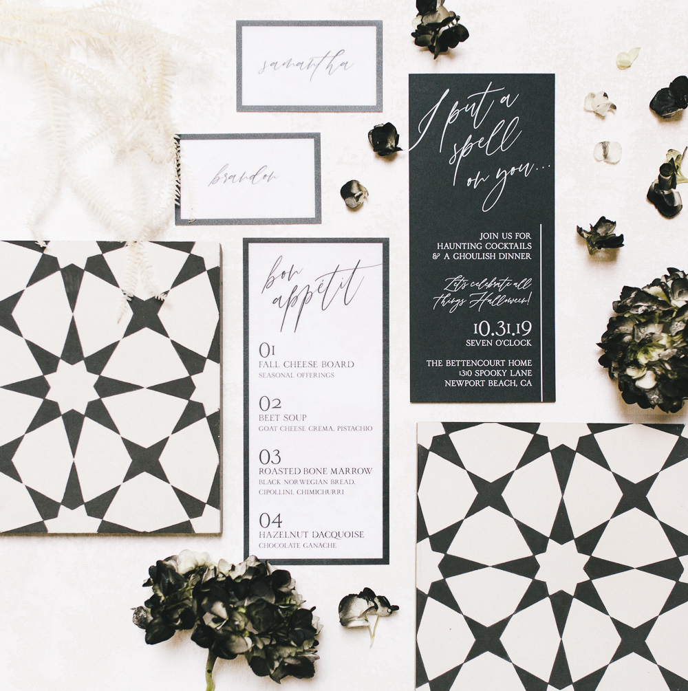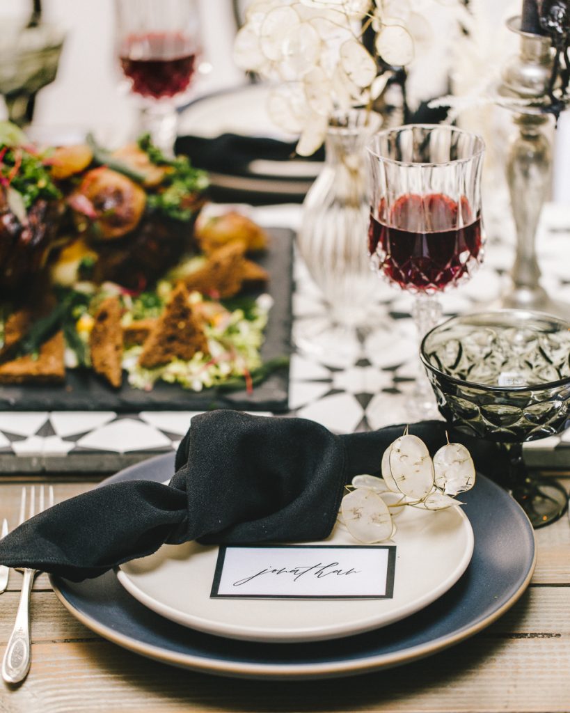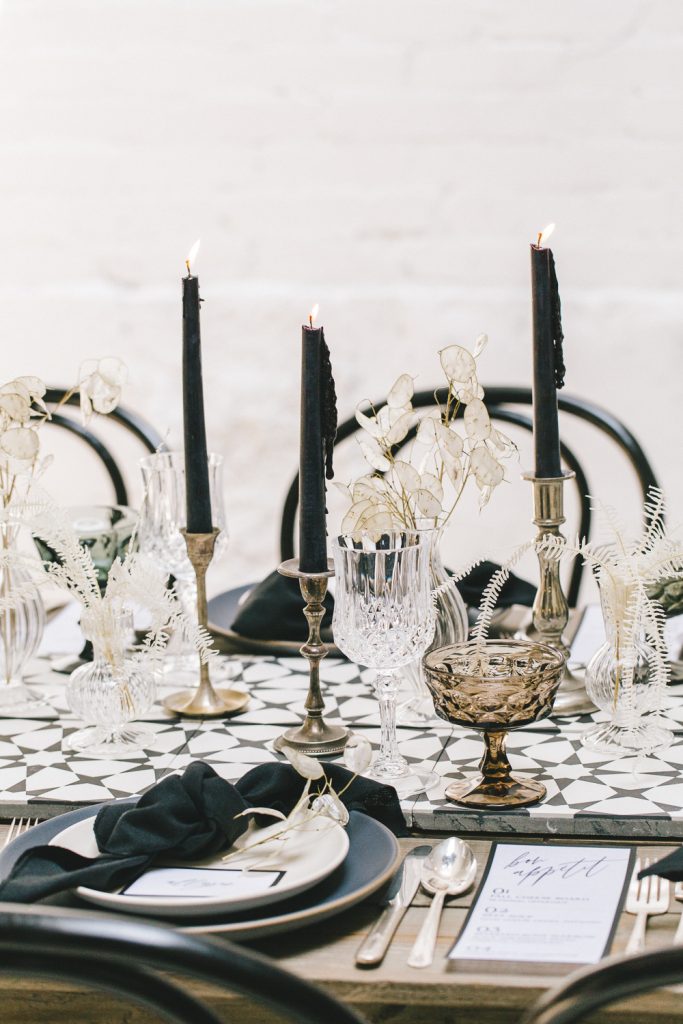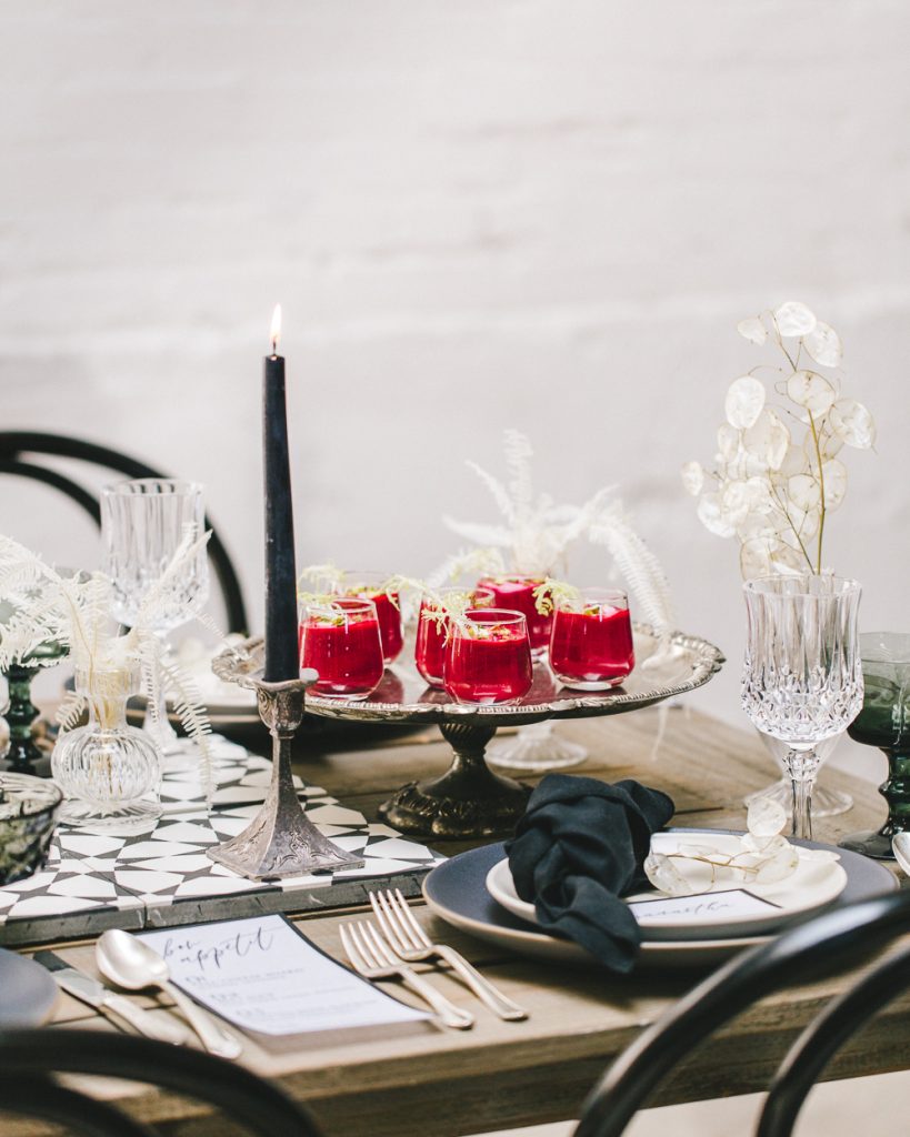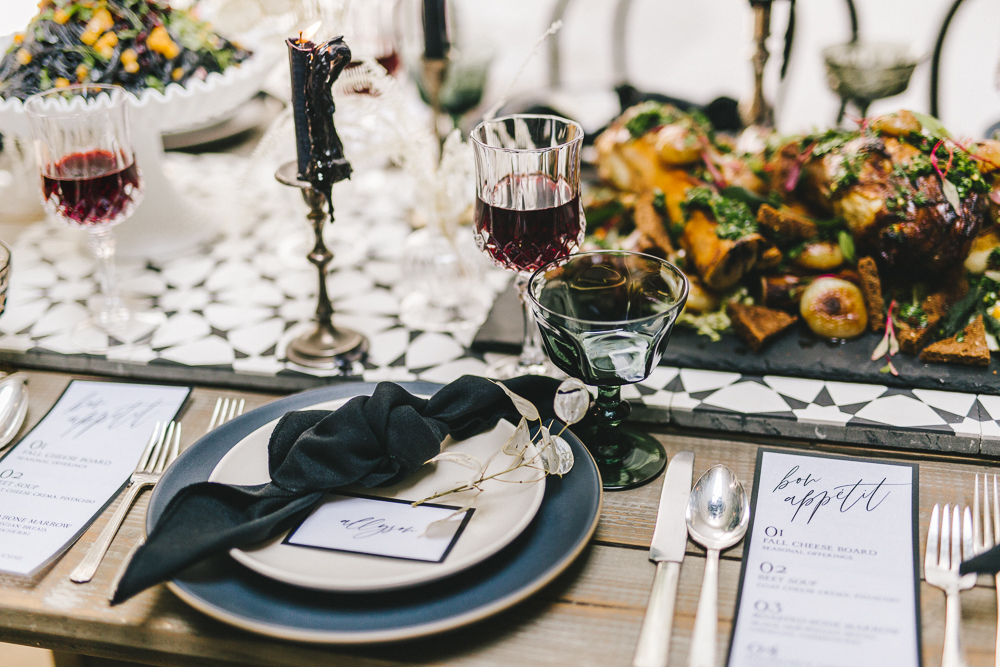 This elegant tablescape would be the perfect haunting night in for the adults. It has just the right amount of spook to it! We are featured on Green Wedding Shoes today as well, so be sure to check that out! In the meantime, let’s get to this prettiness and a little advice on how to recreate this in your own home!