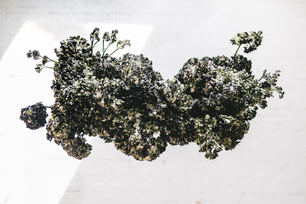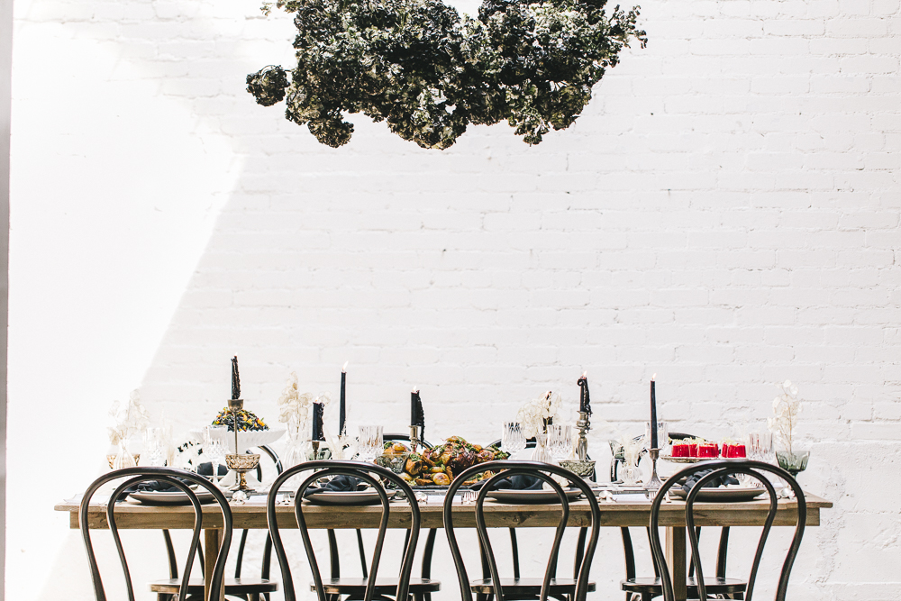 Next up – Get Spooky with your Florals… Our florist Alex from Third & Park spray painted hydrangeas to make them have that dark grayish black color! I love the eerie yet eye catching feel they created above our table.