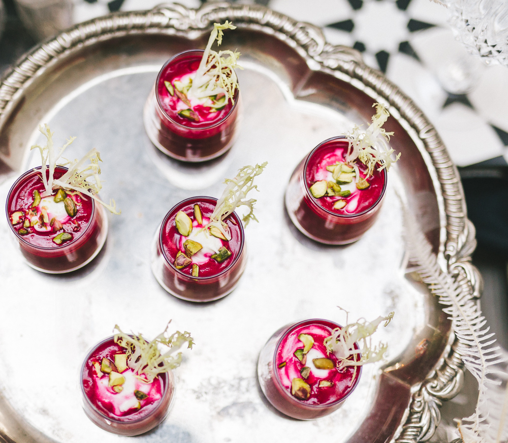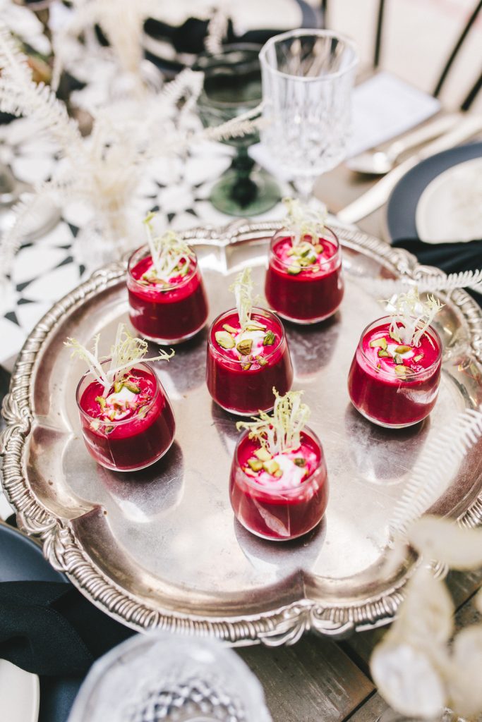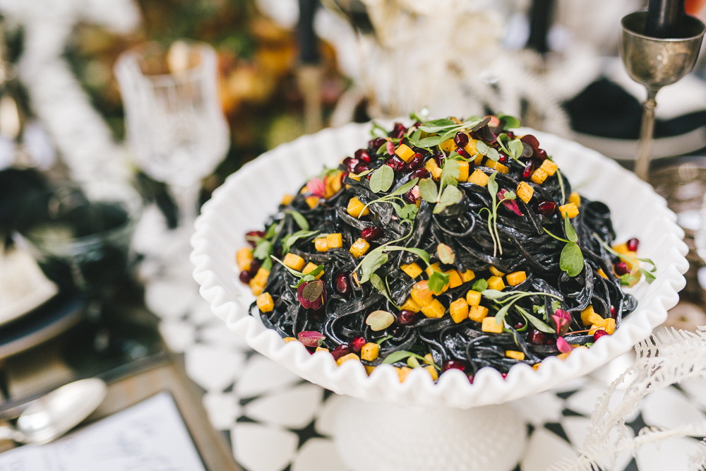 Now, for my last piece of advice… Wow them with a creepy menu! Colette’s Catering did it again with some terrifying treats! The menu consisted of a deep red beet soup, bone marrow, and a black squid ink pasta!