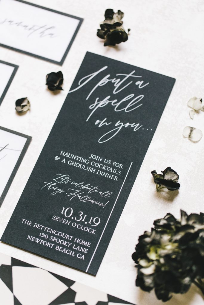As Halloween creeps up on us more, we will be sharing lots of fun inspiration! We’ve already shared this cute backyard kid’s party, a ladies Tarot night and this amazing Ouija cheese board. Today it’s all about a black and white themed fright night!