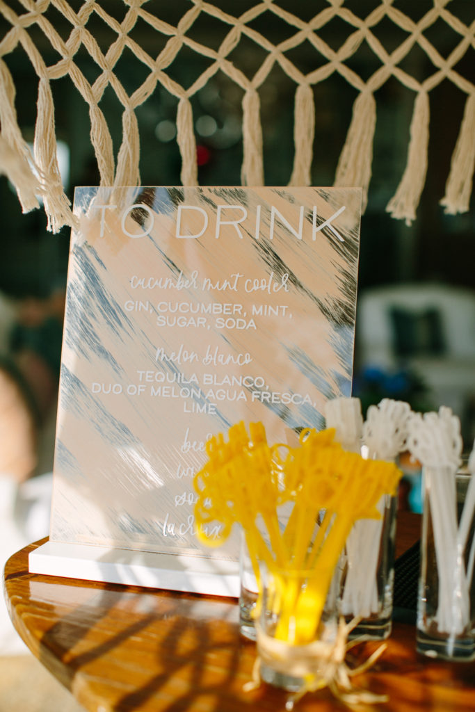 She created these pretty signs, because of course we needed a welcome sign among other pretty details. We did a peachy water colored detail on acrylic signage and I love how they turned out!!