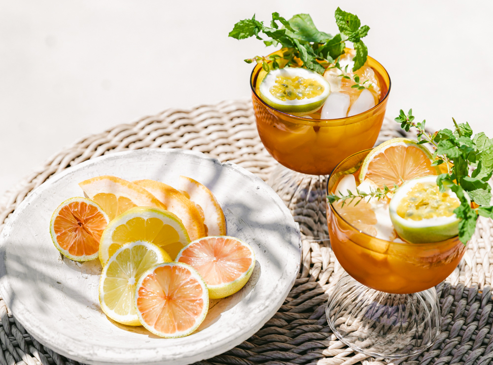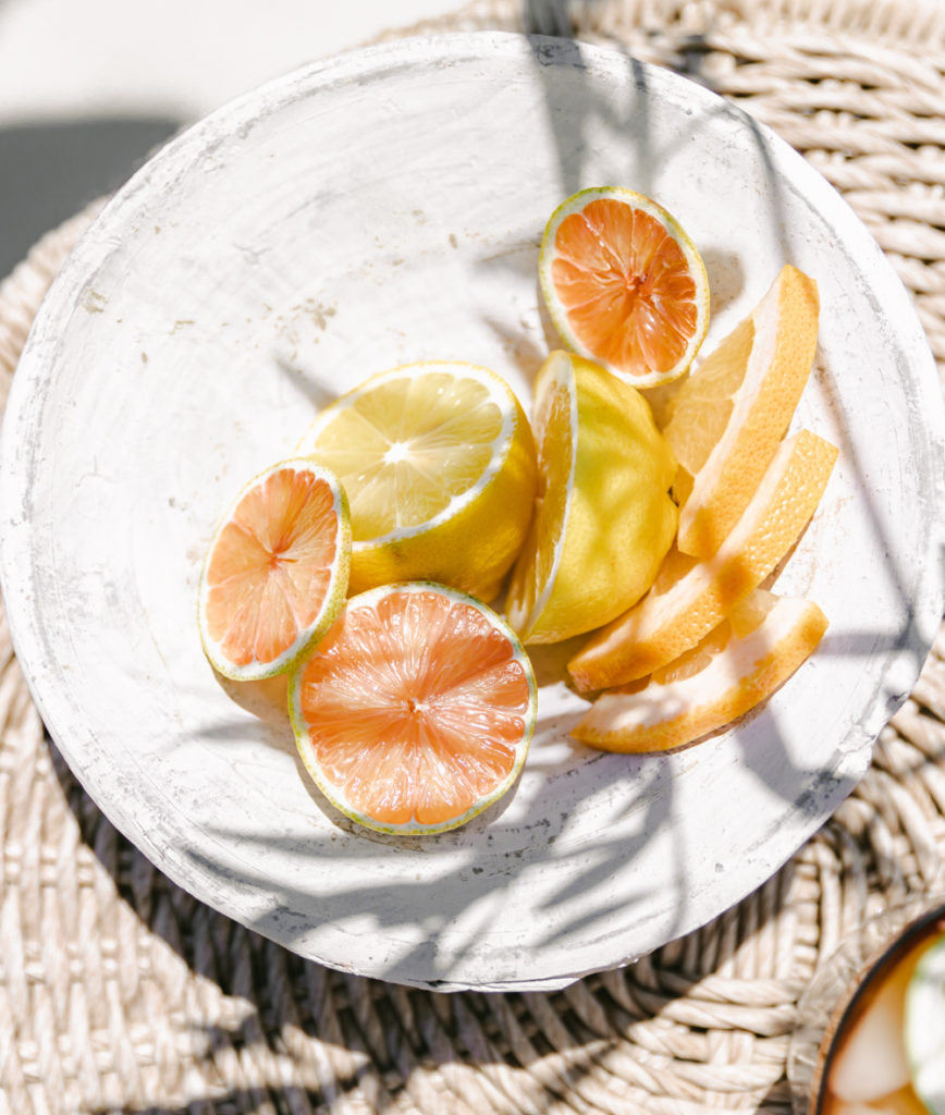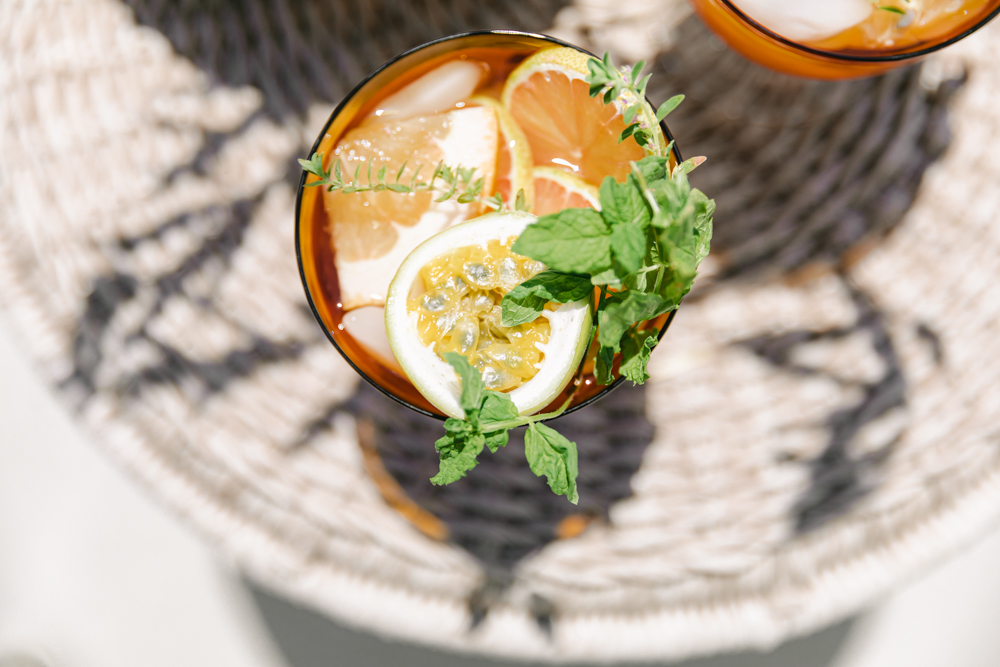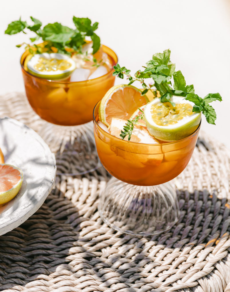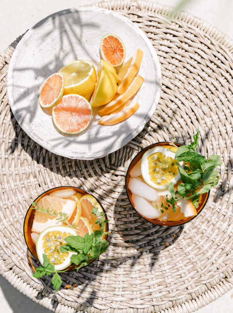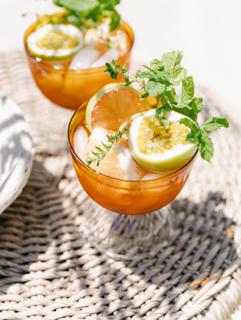 The passionfruit is the showstopper in this sangria! Another fun fruit I incorporated was the pink lemon. We grow these in our backyard as well.