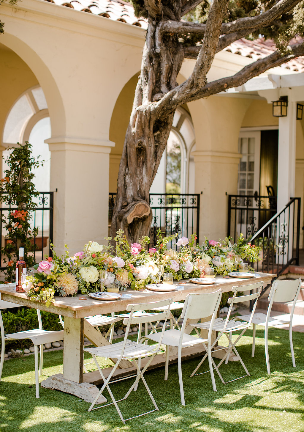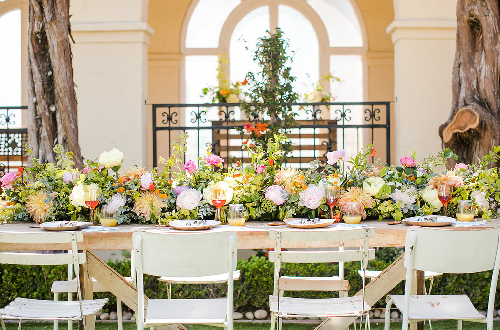 Well I teamed up with a few of my favorite friends to do just that! I ventured over to the Ebell Club of Santa Ana for this pretty al fresco dinner and it was the perfect picturesque spot! Colette’s Catering, who we love so dearly, are exclusively working with this space and have been updating it for events. It has the prettiest rustic Spanish charm that will make anyone fall in love! Keep scrolling to see all the pretty we all put together!!