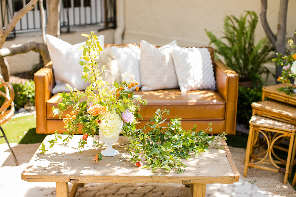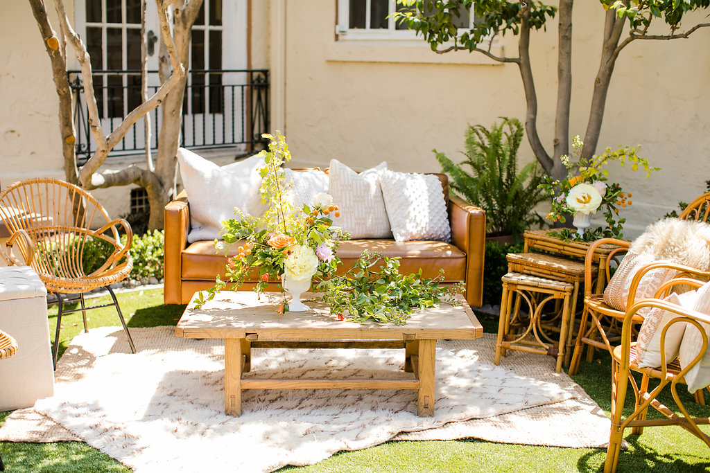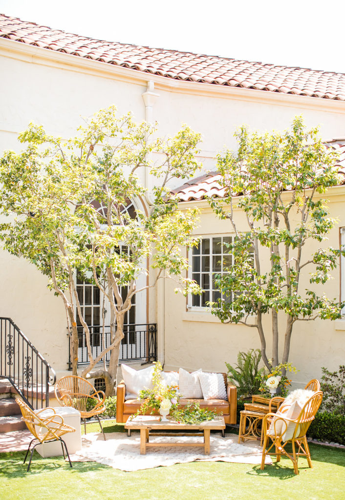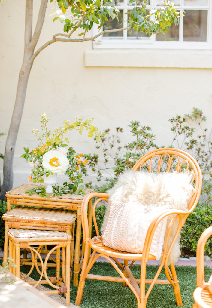This lounge set up from Sweet Salvage was the perfect mix of mid century and rattan. We just discovered this cute rental company and I’m so in love with them!! Such great inventory and in our backyard, yay!!