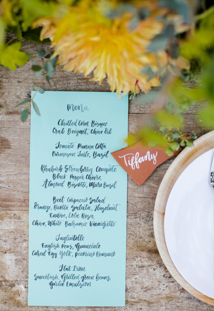 More pretty from Michelle Dolpathado, I love me some terra cotta place cards and the menus are so pretty too!