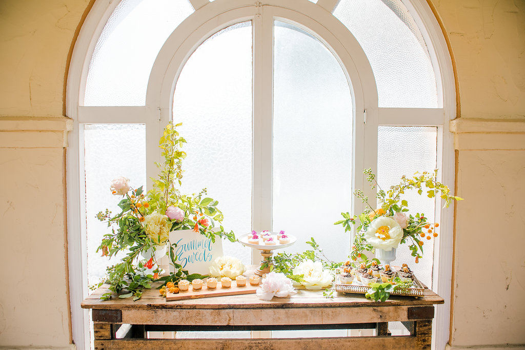 The talented Colette’s crew even busted out the desserts!! A little pop of color, some yummy chocolate treats and of course cheese cake!! Adorned with gorgeous florals, lovely calligraphy and in front of the prettiest vintage window and that’s a sweet dessert set up!