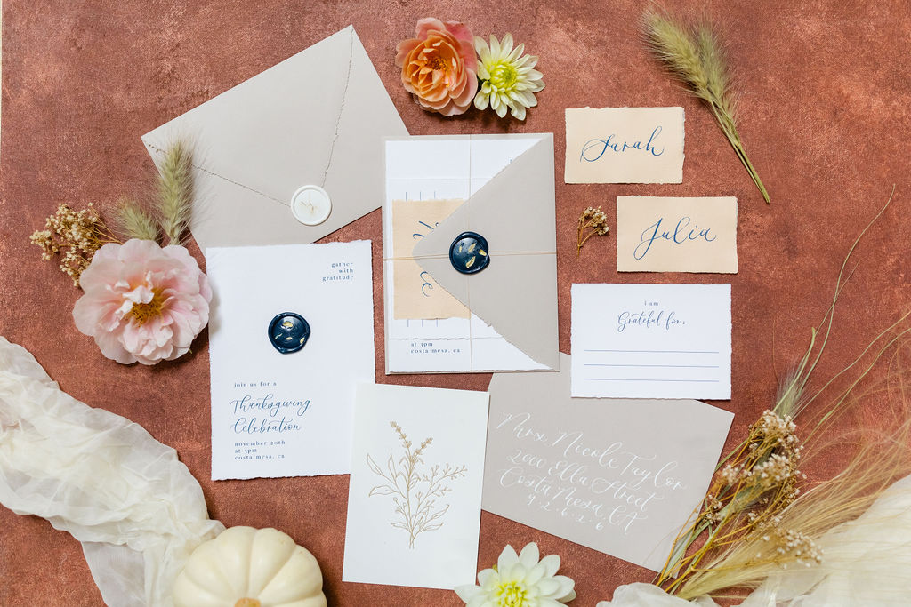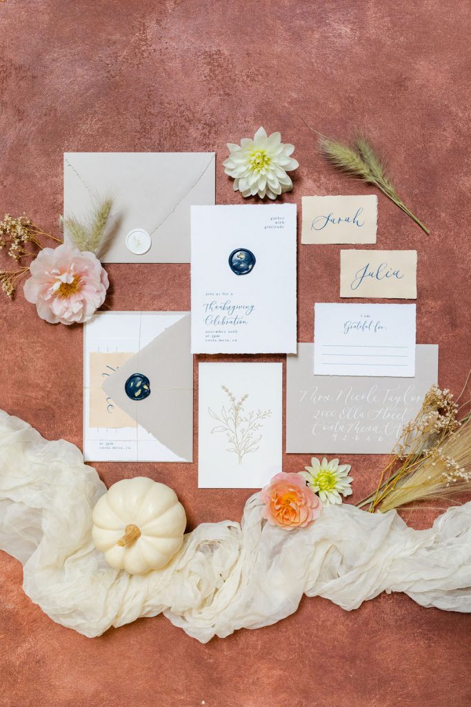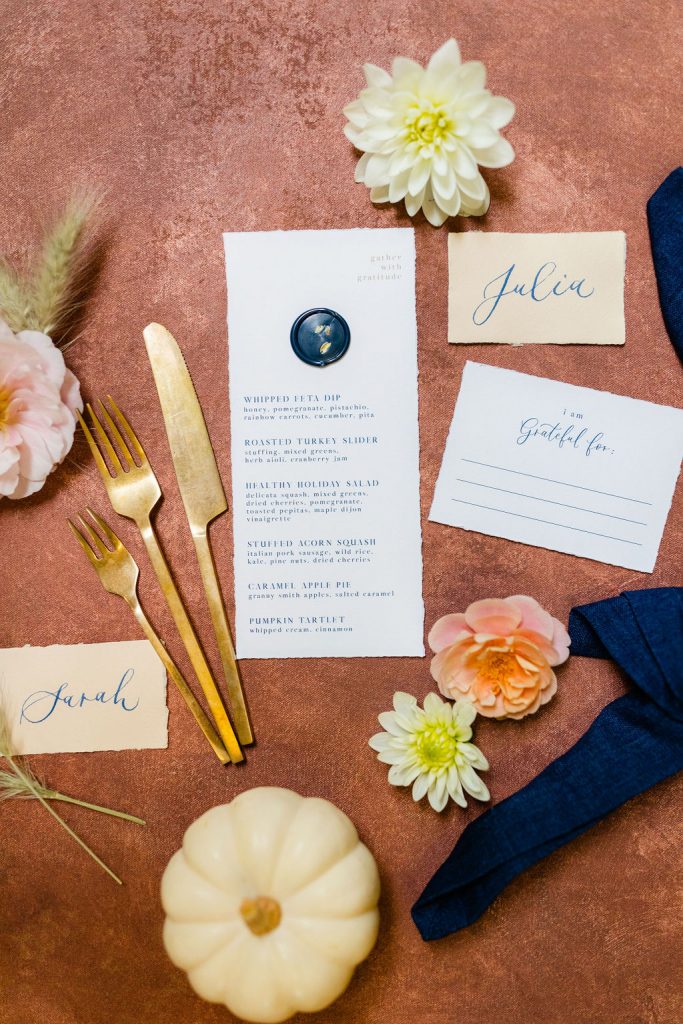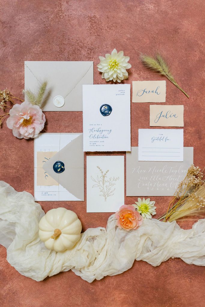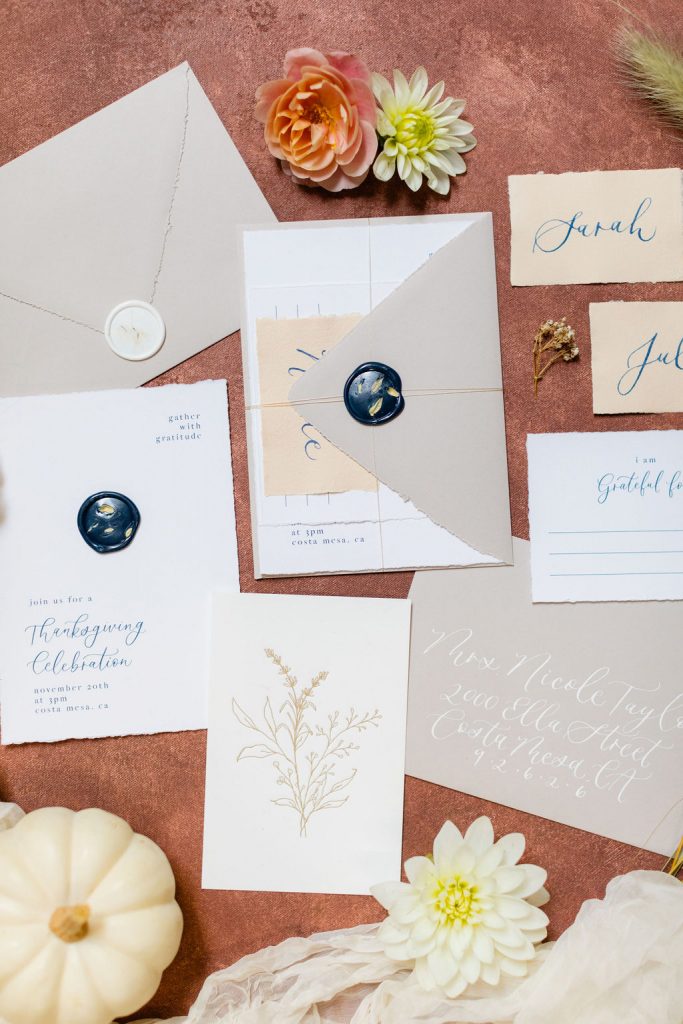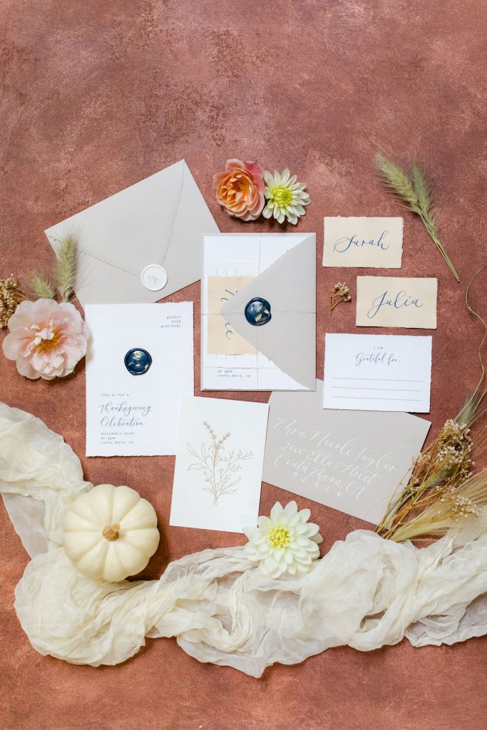 It all starts with a pretty little invite… Kaylyn from Pirouette Paper created the most stunning invitation suite along with gorgeous details. I love playing with her pretty pieces, and if there’s an occasion to go all out on your table settings, it’s Thanksgiving! I love the wax seals!! And how beautiful is that new styling mat color from Chasing Stone? I’m obsessed…
