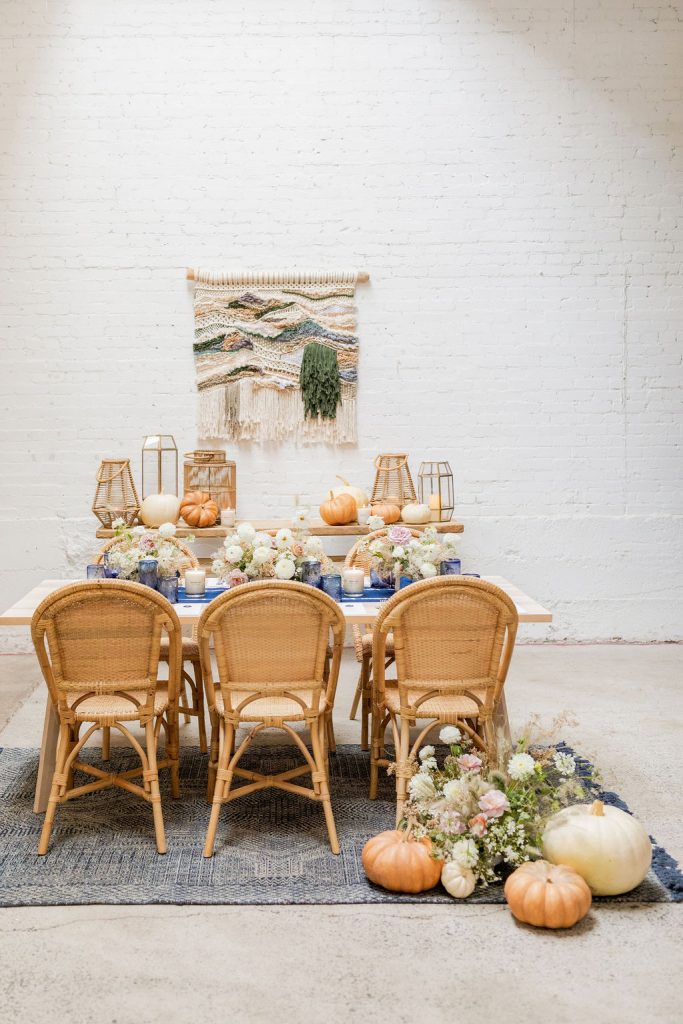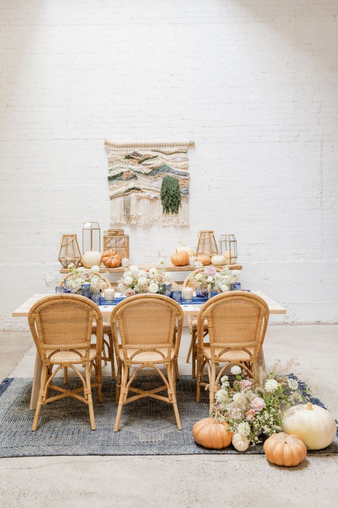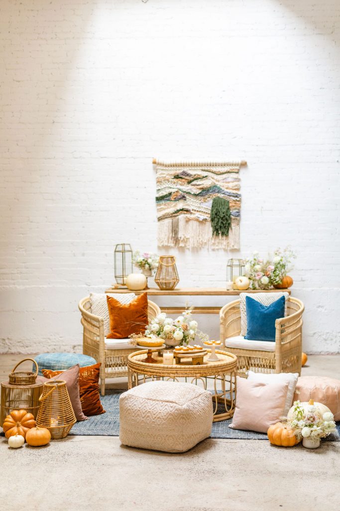 Of course, we had to partner with our friend Marnie at Sweet Salvage Rentals for the furniture. She’s my favorite! Her rattan chairs really fit the bill here, I love them so much! And as always, she had the perfect rug to go with our color scheme.