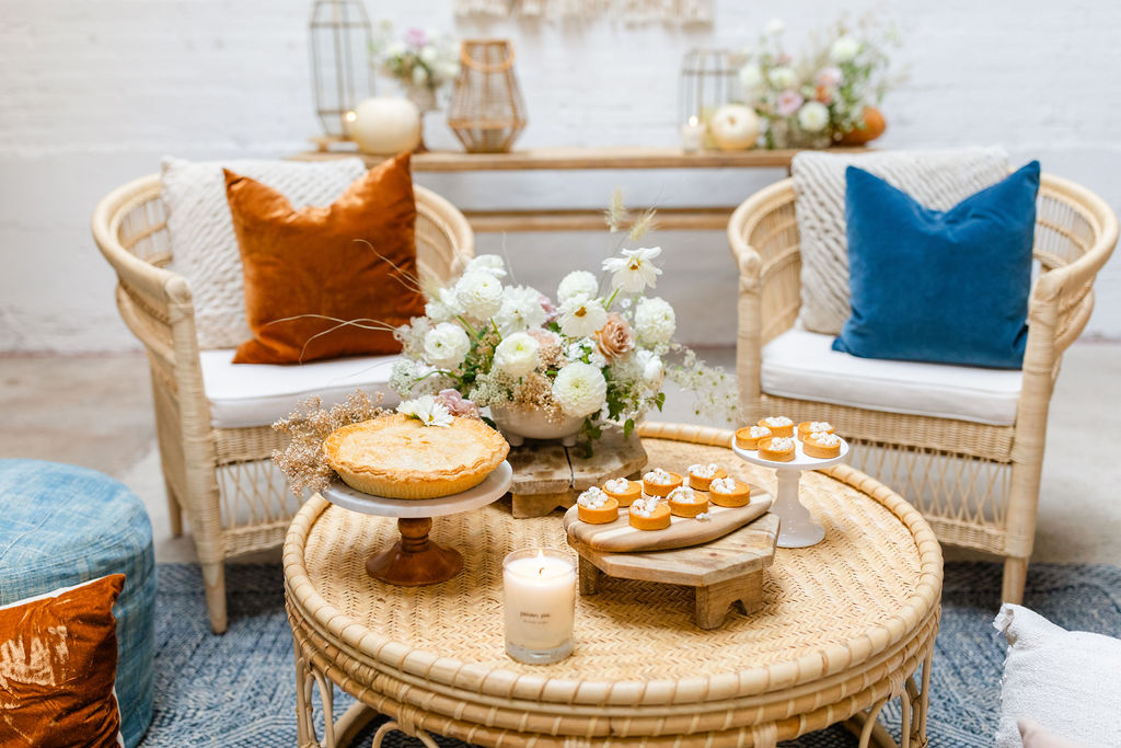 On Thanksgiving, after you stuff your face and unbutton your pants, it’s time to chill in a pretty little lounge. Sweet Salvage Rentals knows what’s up! And of course to have a little dessert, because there’s always a little more room! Taylor Made Catering also does desserts including a classic pie and mini pumpkin tarts. Repeat after me, there’s always room for dessert! Just make it your mantra ;)