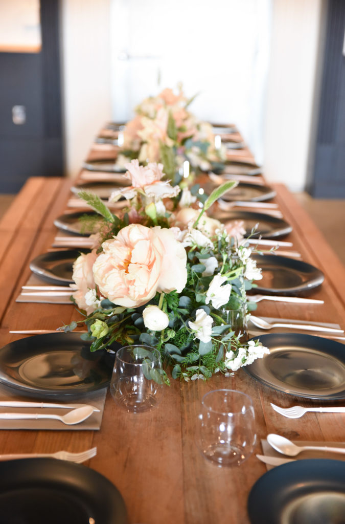 Since the flowers were so pretty and feminine I added a more masculine touch with the tabletop.  I loved the idea of mixing the black and tan with the blush colors.  I can’t say enough good things about the tabletop selection from L’entramise.  Best and chicest disposable option out there!!