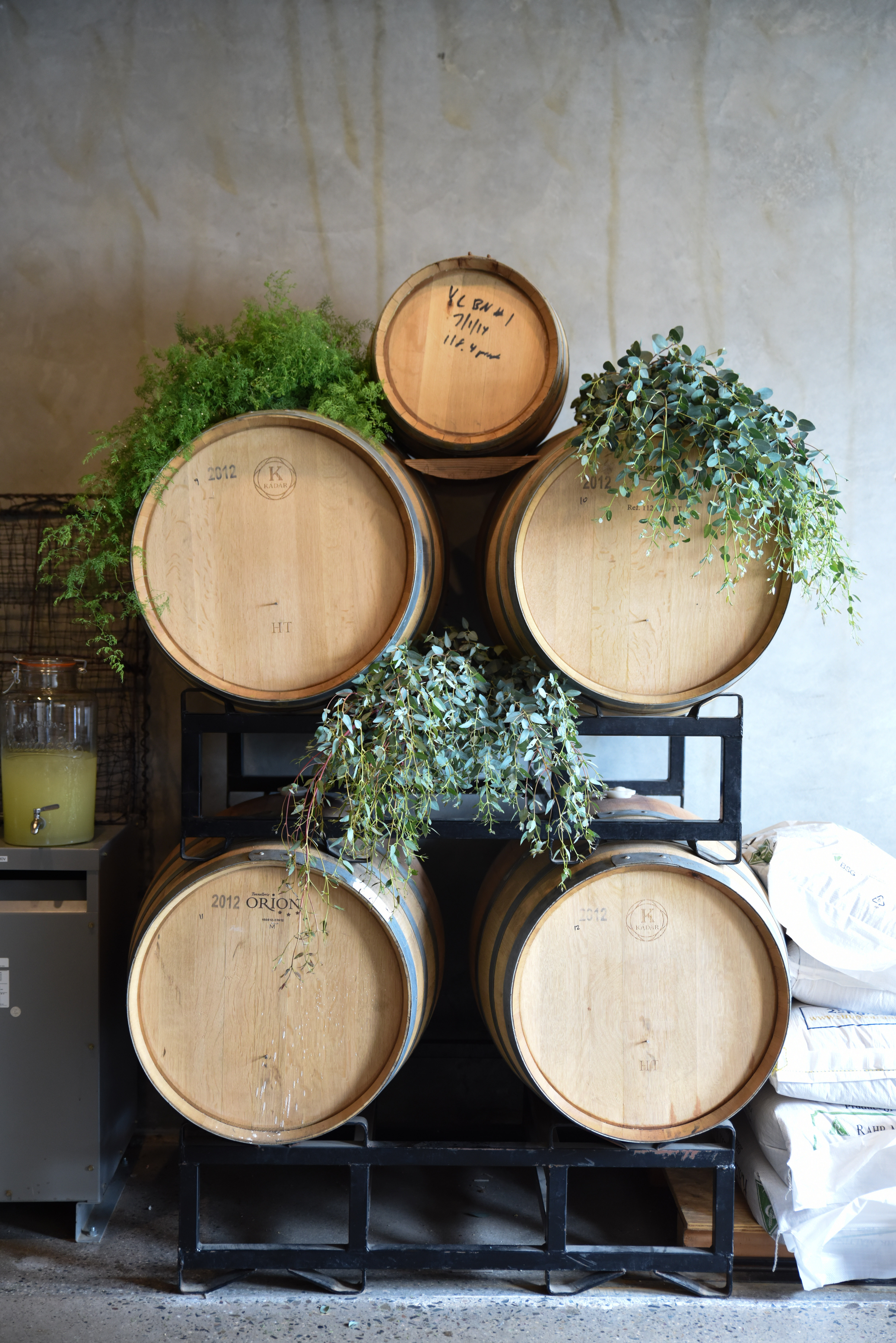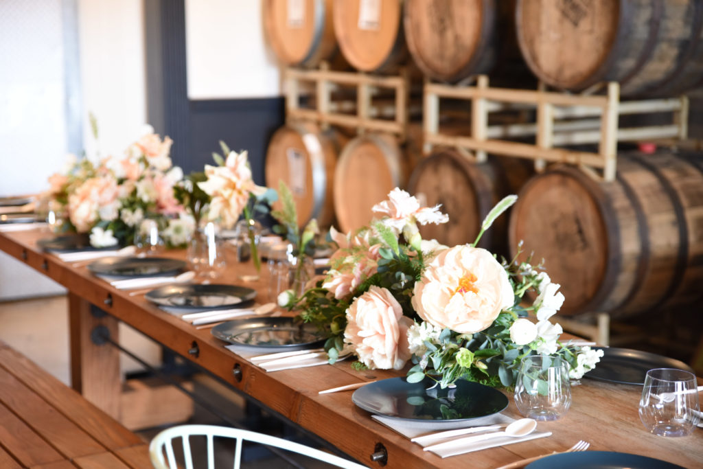 Guests were greeted with a sign that gets straight to the point…  Welcome – now let’s drink some beers!!!  Thanks Poppy Jack!!  We used Gunwhale’s private room space that has exposed barrels and kegs, and they add so much to the decor.  We just added some greenery to them, you know, just Beijos’d it up a bit!
