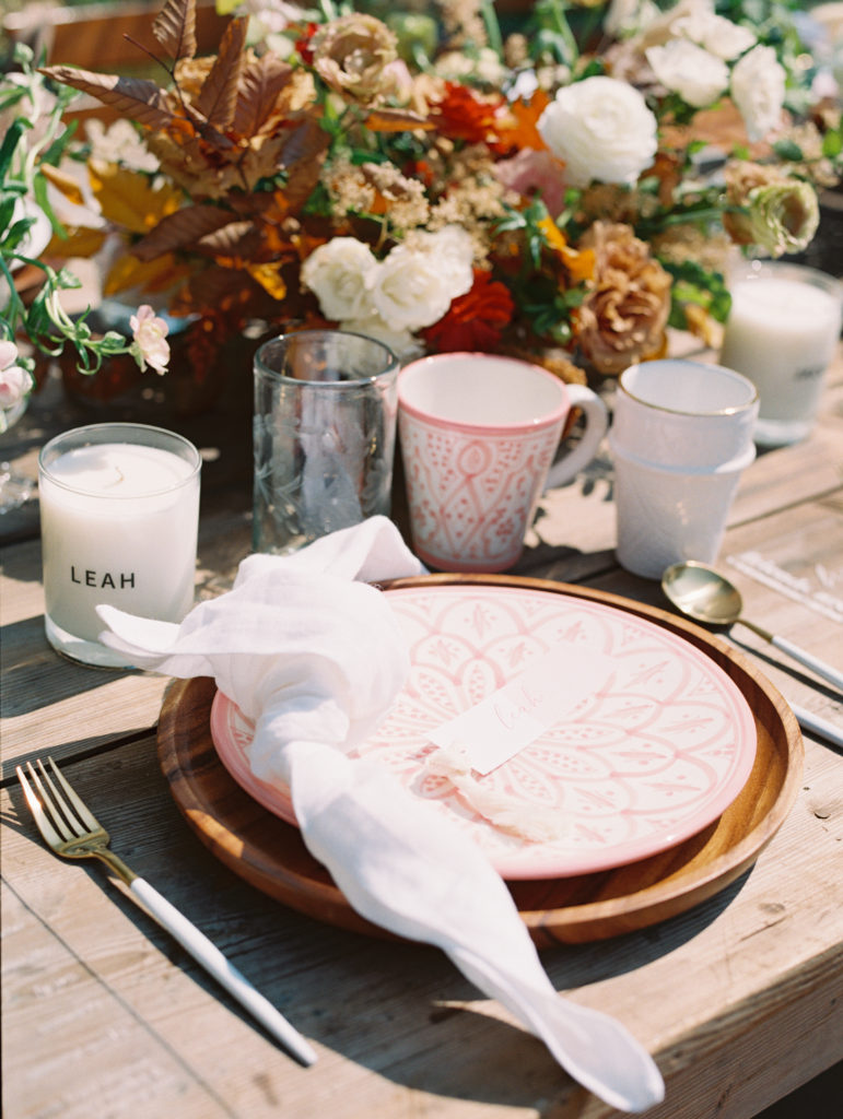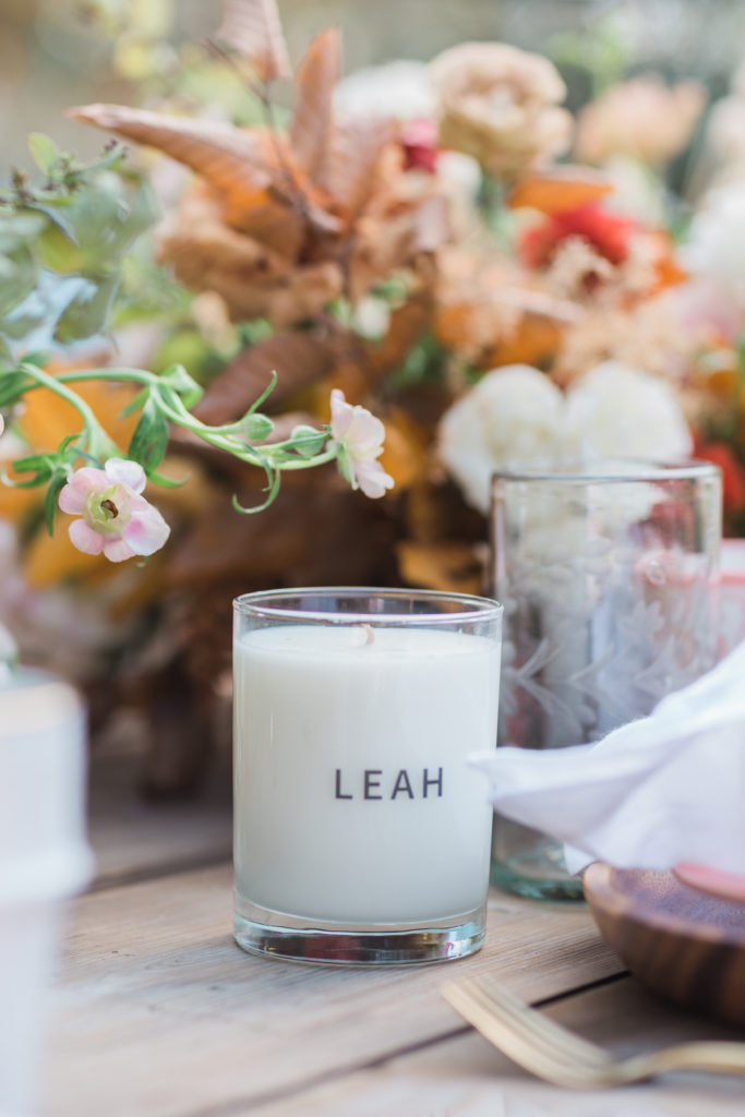 Each place setting had a few goodies for the guests from The Little Market, like these personalized candles in Fall fragrances like Pumpkin Pie and Fig.