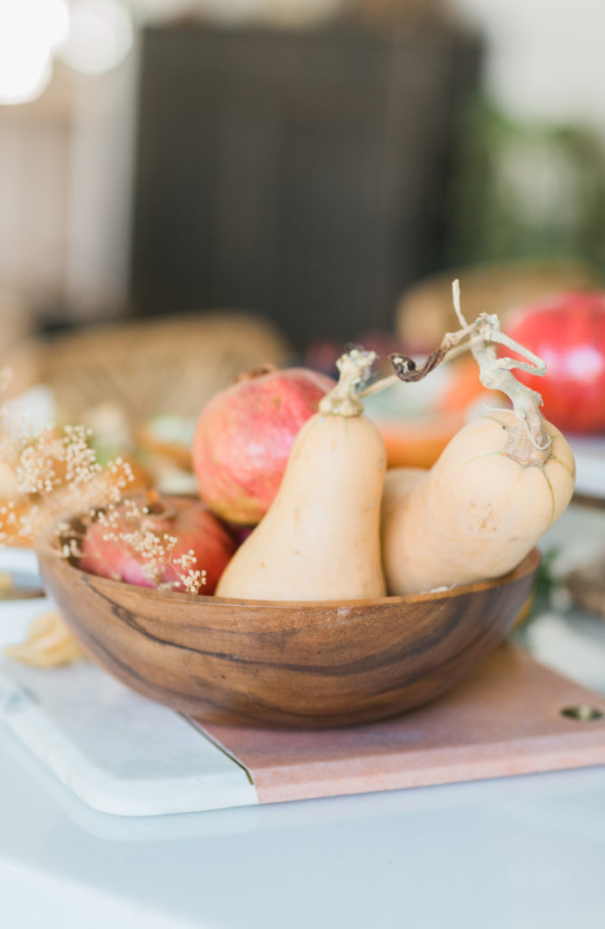 We added more Fall fruits and florals as decor as well in The Little Market’s pretty bowls. I love using natural elements as decor!