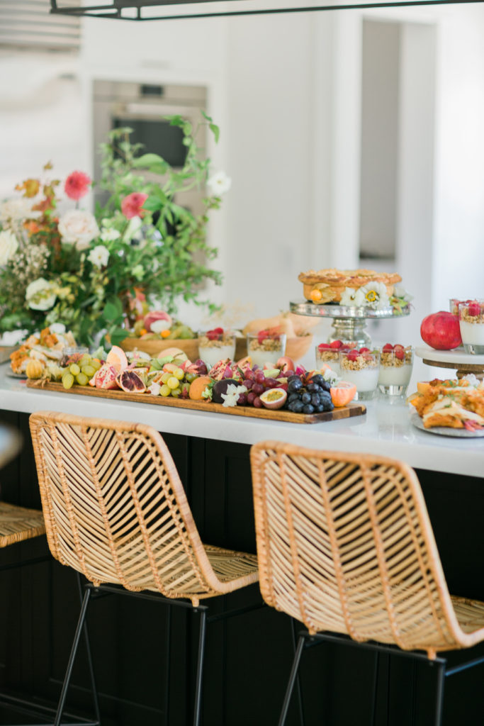 The food was displayed in Marnie’s gorgeous kitchen – don’t worry guys, home tour coming soon!! But wow, that spread!!! Literally my tummy is growling writing this and looking at all the pretty images! Colette’s Catering did not disappoint, as a matter of fact, I think their brunch spreads are usually my favorites!! Wait till you see what’s on the menu…