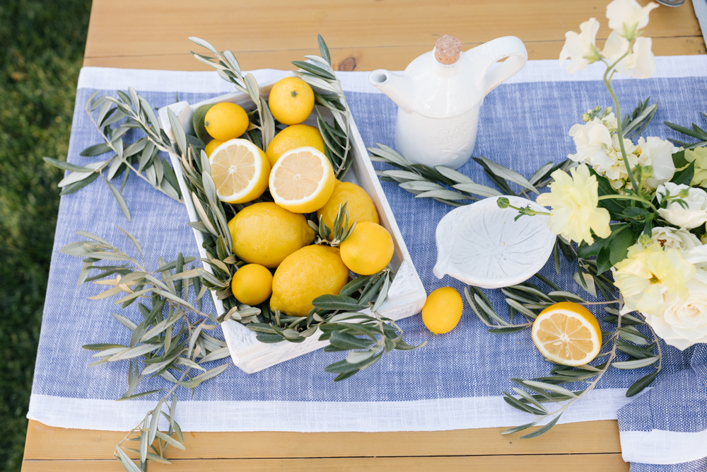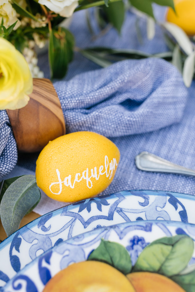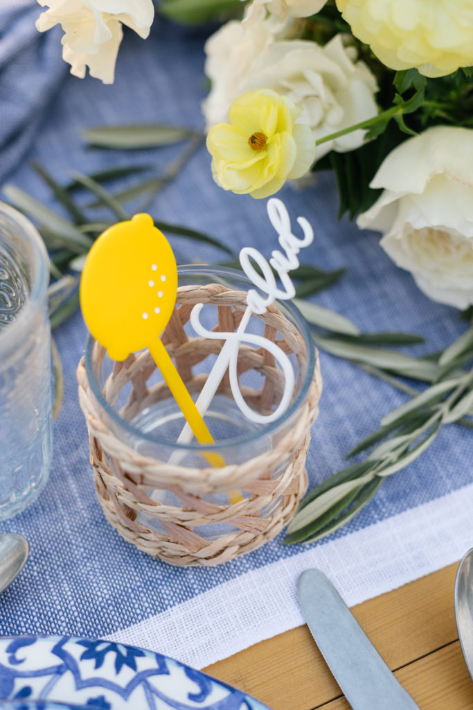Details, details, details. I used Sur La Table’s Decorative Lemons along our tablescape mixed with real ones and also used them as place cards! Such a fun way to wow your guests and make them feel special. Plus, with pretty handwriting by Proper Letter you can’t go wrong! She also did adorable cocktail stirrers in lemons and the word Salud! The more details the better!