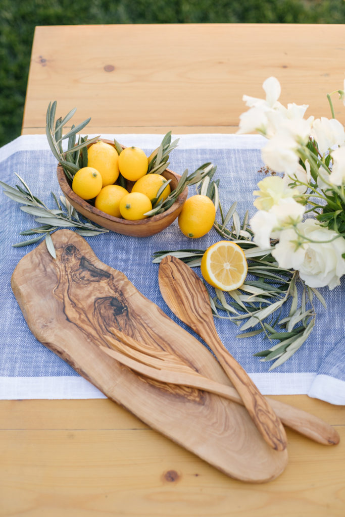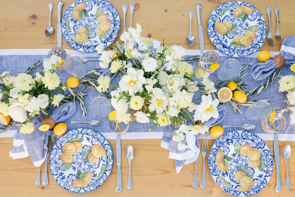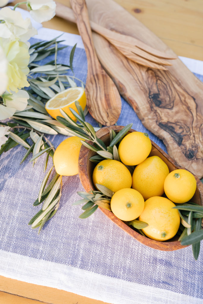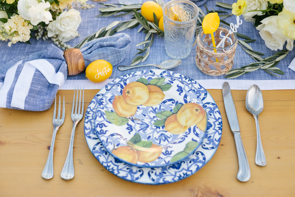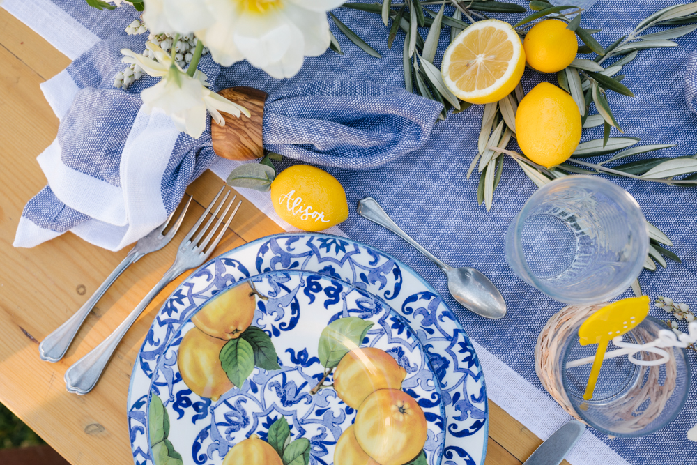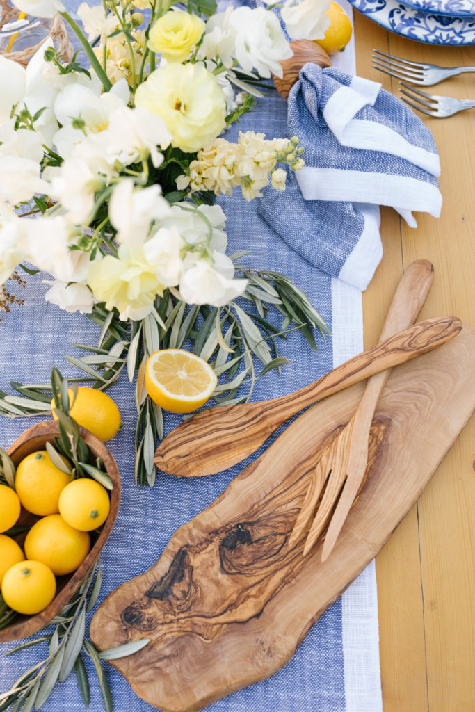 When purchasing items for your table mix in classic pieces to go with the printed china. I used a lot of Sur La Table’s olive wood pieces to mix in with the Limone Collection and also used the Fortessa San Marco silver antiqued flatware. It’s great to have a few standout pieces like the Limone, but it’s nice to have other pieces you will use frequently and that can be intermixed with other prints.