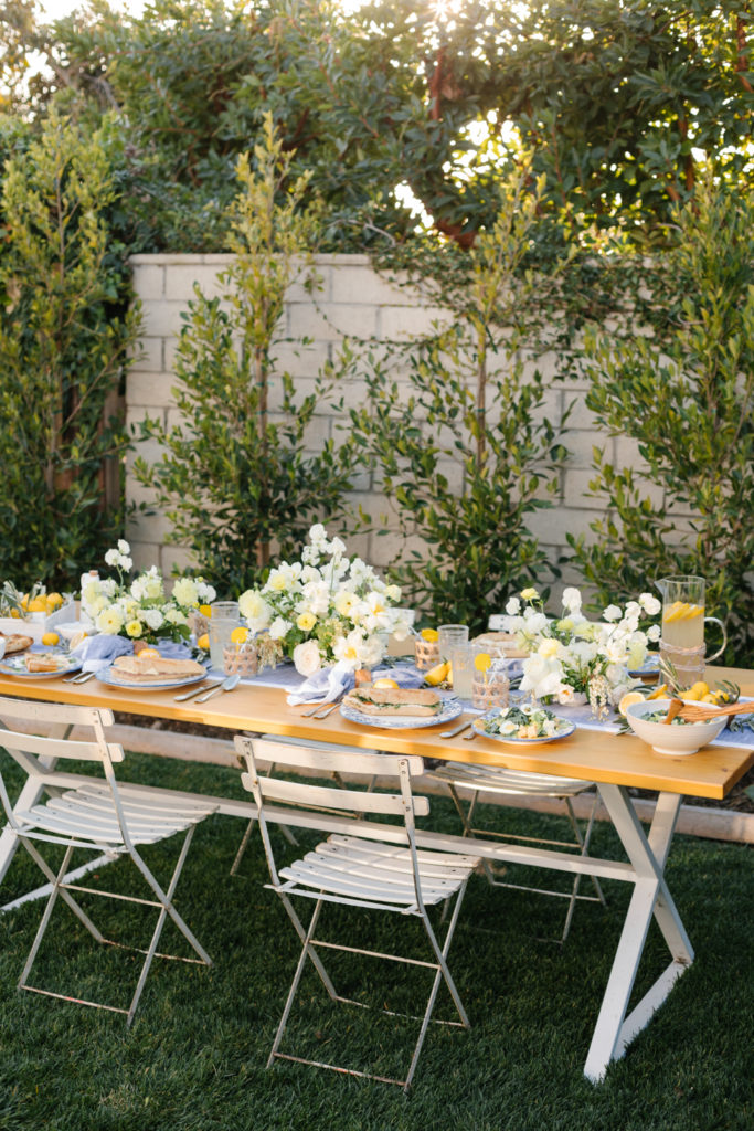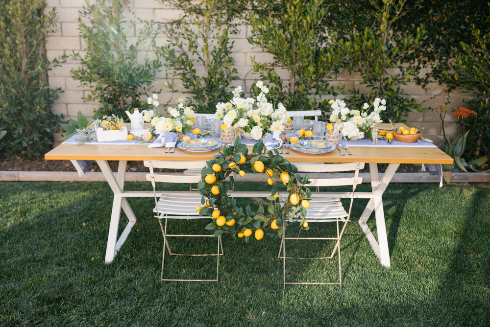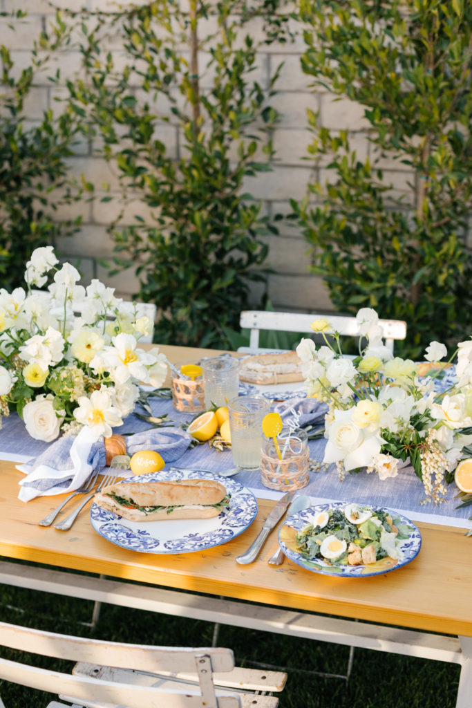 Sunset hour never looked so good! We set our table with all the pretty blues and whites with fun touches of greenery and yellow! Now, for all of our tips…