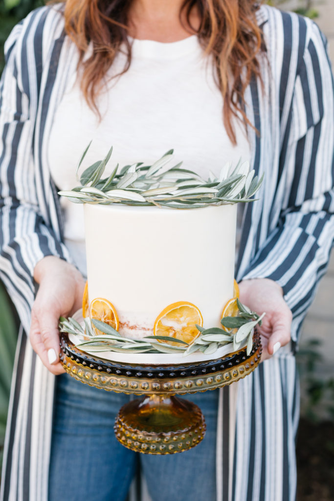 Last but not least – always have dessert! Let’s be honest, aren’t you a little bummed when you go somewhere and dessert isn’t an option?! I’m not that kind of hostess guys, I’m a nice hostess!!! For this party I did a simple yet delicious vanilla cake from Sweet & Saucy Shop and added greenery and lemons – easy and pretty!