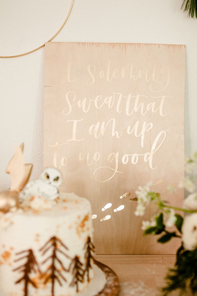 You didn’t think I’d let a party go by without desserts, did you?! The Sweet Lemon Bakeshop wow’d me again with this set up! SO many amazing Harry Potter inspired treats like a Hedwig cake, golden snitch cake pops and the cutest sugar cookies ever!! It was so cute to see the littles ooh and aah over these ones. And isn’t that the perfect sign by Calligraphy Nerd to go along with them?